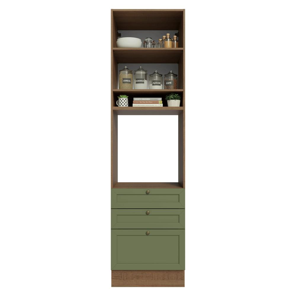 Torre Quente 60 cm 1 Porta 3 Gavetas Rustic/Verde Vik Madesa