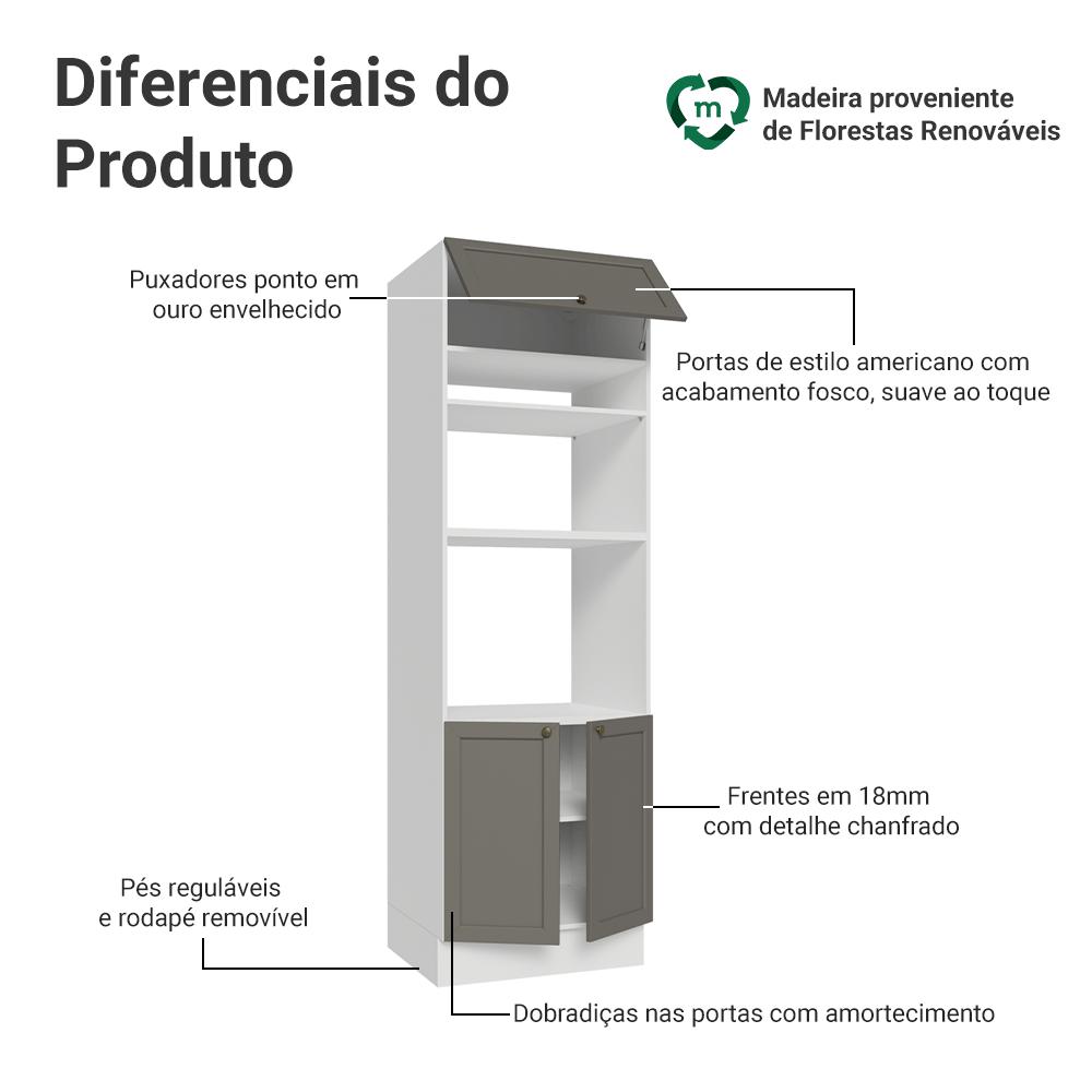 Torre Quente 70 cm 3 Portas Branco/Cinza Vik Madesa