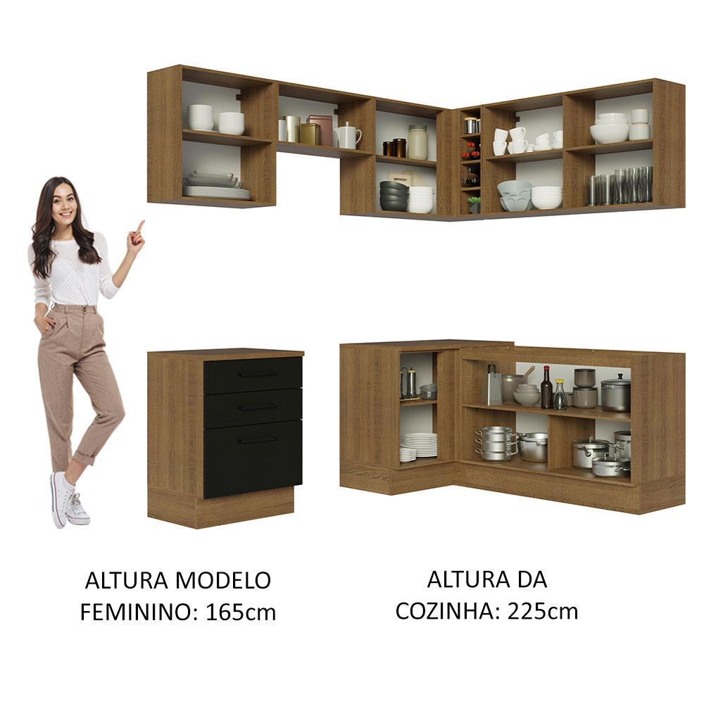 Cozinha Completa de Canto Madesa Agata 399002 com Armário e Balcão (Sem Tampo e Pia) - Rustic/Preto