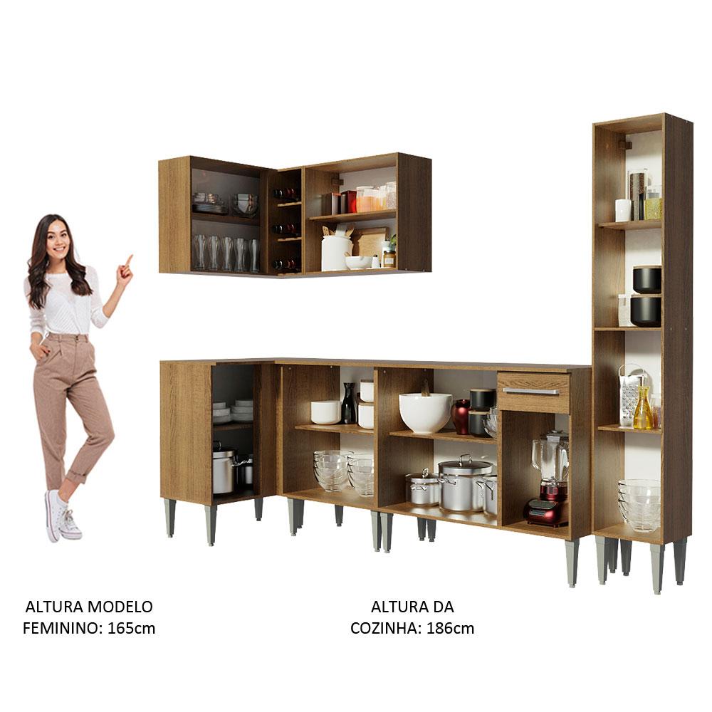 A Cozinha Emilly Water de Canto Reto da Madesa é fabricada com itens de qualidade superior, como puxadores com detalhe em alumínio e corrediças e dobradiças metálicas resistentes. Contempla três balcões, dois armários aéreos, uma adega acoplada e um paneleiro, todos com ótimo aproveitamento dos espaços. Assim, fica mais fácil organizar os utensílios, louças e eletros.Todos os módulos são separados, possibilitando a montagem conforme a necessidade do seu ambiente. Os pés são em PVC, pensados para facilitar a limpeza e com regulagem que permite nivelar pequenas imperfeições no piso. Para completar, todos os balcões acompanham tampo em MDP.O acabamento é no padrão amadeirado Rustic, em Pintura Poliéster ecológica com 7 camadas de proteção, que oferecem resistência contra os efeitos da água e do calor.Os armários aéreos e o paneleiro precisam ser fixados na parede.Medidas totais: 186 cm de altura x 325 cm de largura x 44 cm profundidade nos balcões e 27 cm nos aéreos e no paneleiro.Imagens meramente ilustrativas: a decoração não acompanha o produto.Itens inclusos:- Um (1) Armário aéreo de canto com uma (1) porta e uma (1) adega acoplada- Um (1) Balcão de canto com uma (1) portas e tampo- Um (1) Armário aéreo com duas (2) portas- Um (1) Balcão com duas (2) portas e tampo- Um (1) Balcão com três (3) portas, uma (1) gaveta e tampo- Um (1) Paneleiro com duas (2) portasCódigo do produto: GCEM3250025ZObs.: A Madesa não disponibiliza serviço de montagem. O produto segue com manual de instalação e todas as ferragens necessárias para sua montagem.1 – O produto é novo ou usado?R.: Todos os produtos da Madesa são novos, enviados da nossa fábrica diretamente para as casas de nossos clientes.2 – O produto vem montado? Se não, vocês realizam a montagem?R.: A Madesa não disponibiliza serviço de montagem. Todos os produtos seguem com manual de instalação e as ferragens necessárias. Alguns produtos possuem vídeo explicando o passo a passo da montagem.3 – Vocês possuem loja física? Posso retirar meu produto em mãos?R.: Não possuímos loja física, apenas loja virtual. Confira as opções de envio ao colocar o seu CEP.4 – Qual é o valor do envio? Posso pagar separadamente?R.: O valor do envio é calculado com base no peso e volume do produto, e no CEP de destino. Você pode calcular o valor e prazo de entrega no simulador.5 – A Madesa entrega em todo Brasil? Como é feita a entrega?R.: Sim, entregamos no Brasil inteiro através de transportadoras parceiras.6 – O produto acompanha Nota Fiscal?R.: Sim, todos os produtos são entregues com suas respectivas notas fiscais.7 – Os produtos possuem garantia?R.: Sim. A Madesa oferece 3 meses de garantia para defeitos de fabricação.A Madesa se dedica à sustentabilidade com várias iniciativas: temos uma usina própria para gerar energia que abastece uma de nossas fábricas. Selecionamos nossos fornecedores, priorizando aqueles que possuem um compromisso com a sustentabilidade e proteção do meio ambiente. Todo o plástico utilizado no setor produtivo é proveniente de reciclagem e as suas sobras são encaminhadas ao fornecedor que os recicla. Também investimos no desenvolvimento contínuo de nossos colaboradores e em ações educacionais que beneficiem a comunidade.