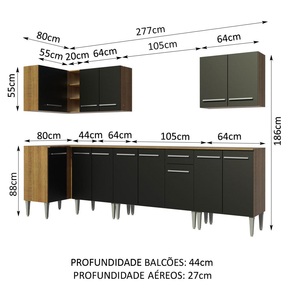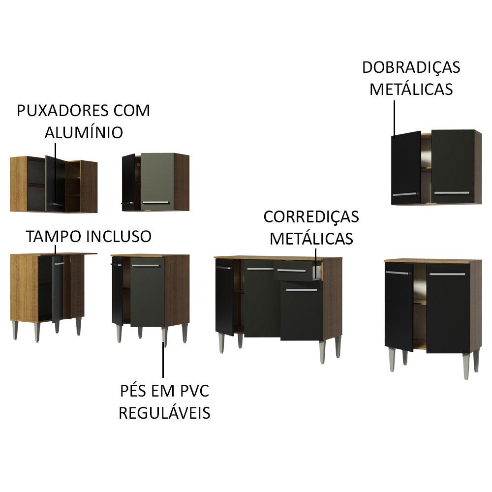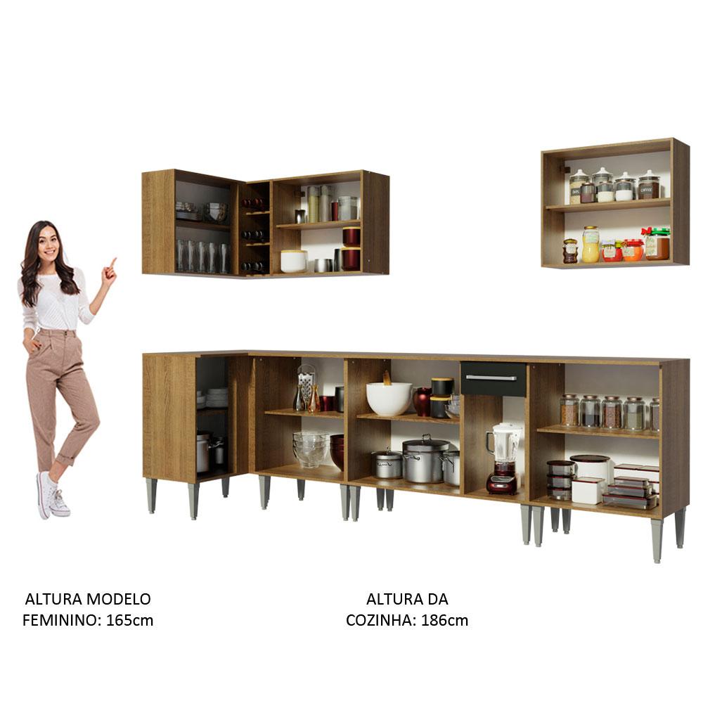 Cozinha Completa de Canto Madesa Emilly Rock com Armário, Balcão e Adega
