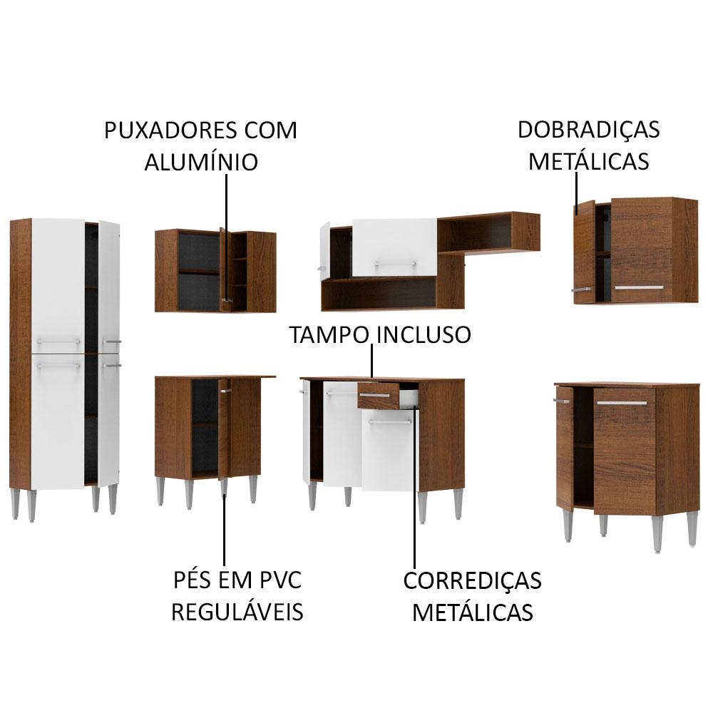 Cozinha Completa de Canto Madesa Emilly Moon com Armário e Balcão 15 Portas 1 Gaveta - Rustic/Branco