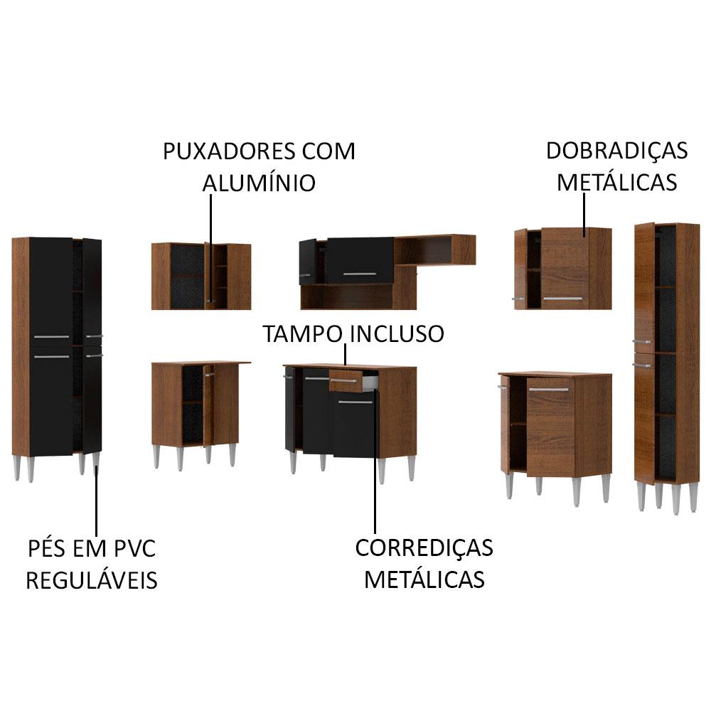 Cozinha Completa de Canto Madesa Emilly Live com Armário e Balcão 17 Portas 1 Gaveta - Rustic/Preto