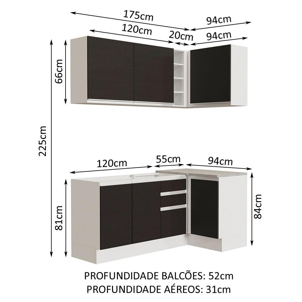 Cozinha Compacta de Canto Madesa Glamy 269001 com Armário e Balcão (Sem Tampo e Pia) - Branco/Preto