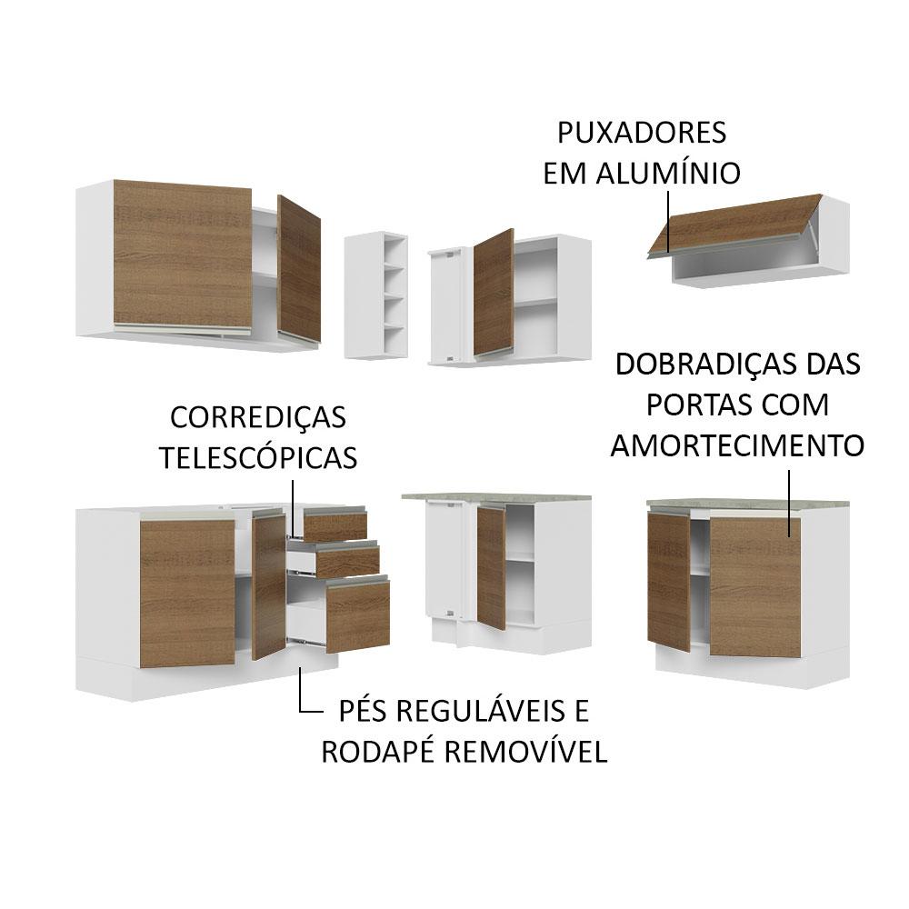 Cozinha Completa de Canto Madesa Glamy 349003 com Armário e Balcão (Sem Tampo e Pia) - Branco/Rustic