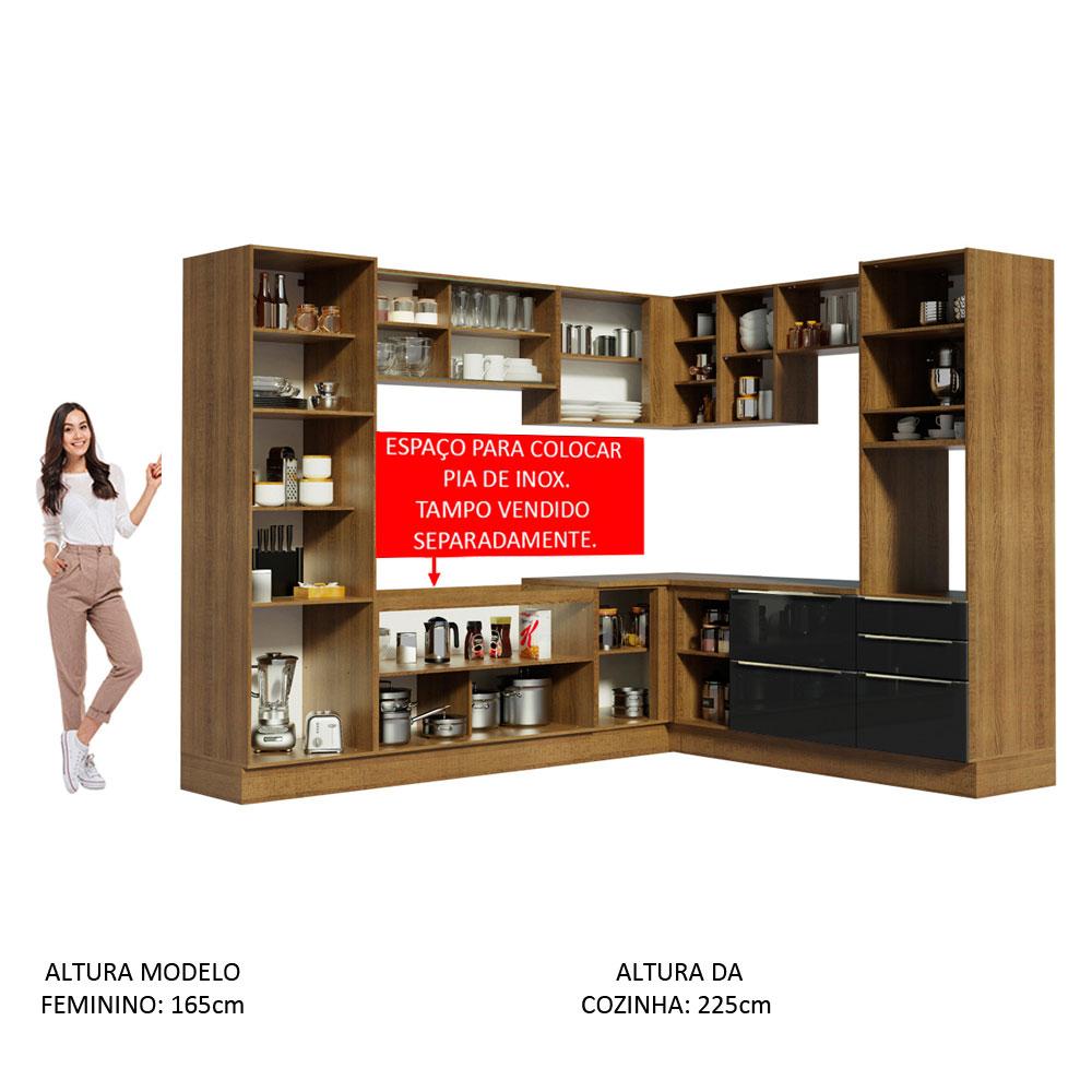 Cozinha Completa de Canto Madesa Lux 526001 com Armário e Balcão - Rustic/Preto