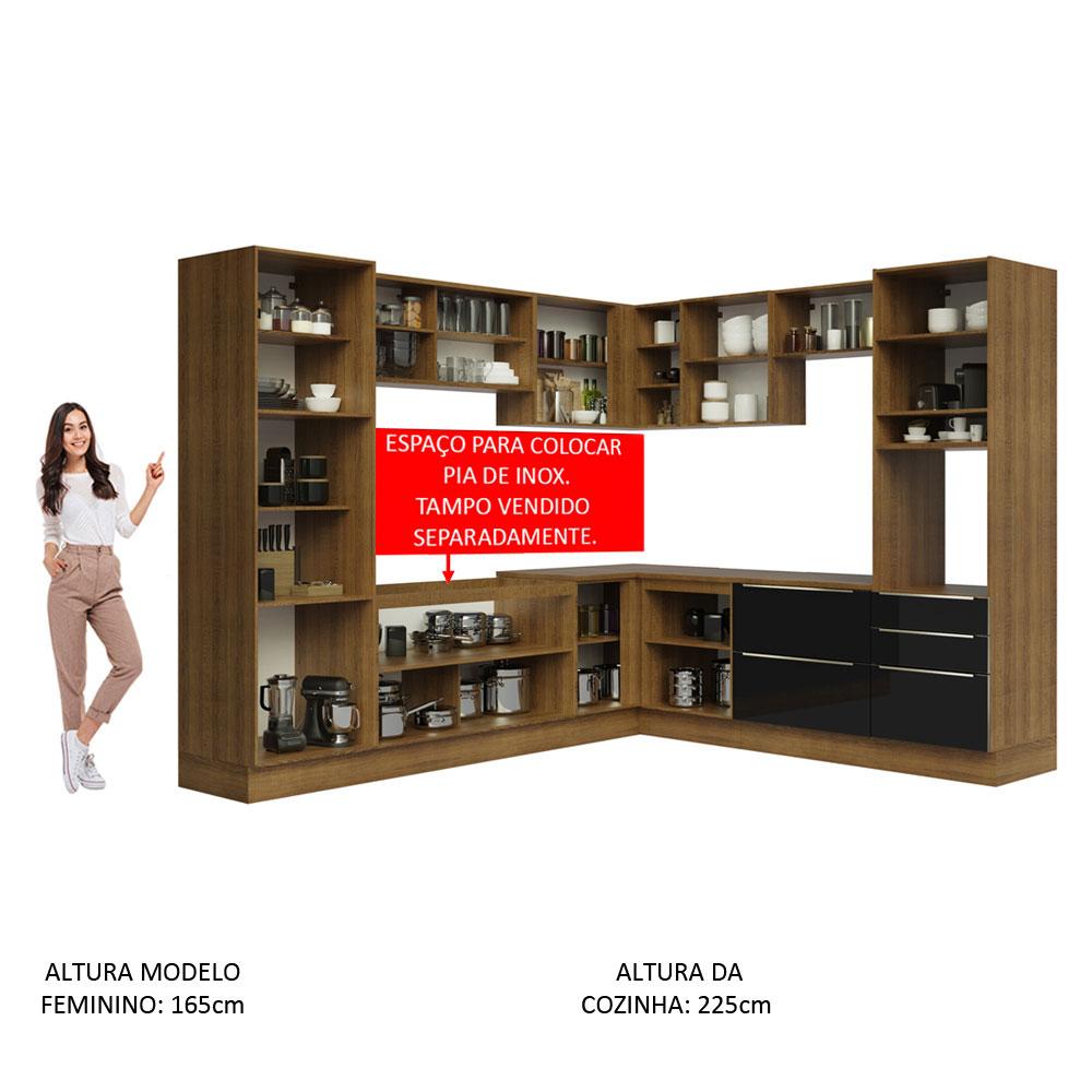 Cozinha Completa Madesa Lux de Canto com Armário e Balcão - Rustic/Preto