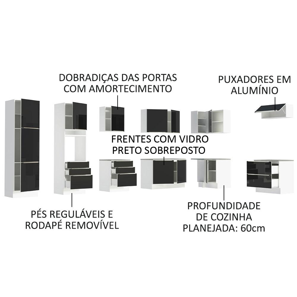 Armário de Cozinha Completa de Canto 546cm Branco/Preto Lux Madesa 05