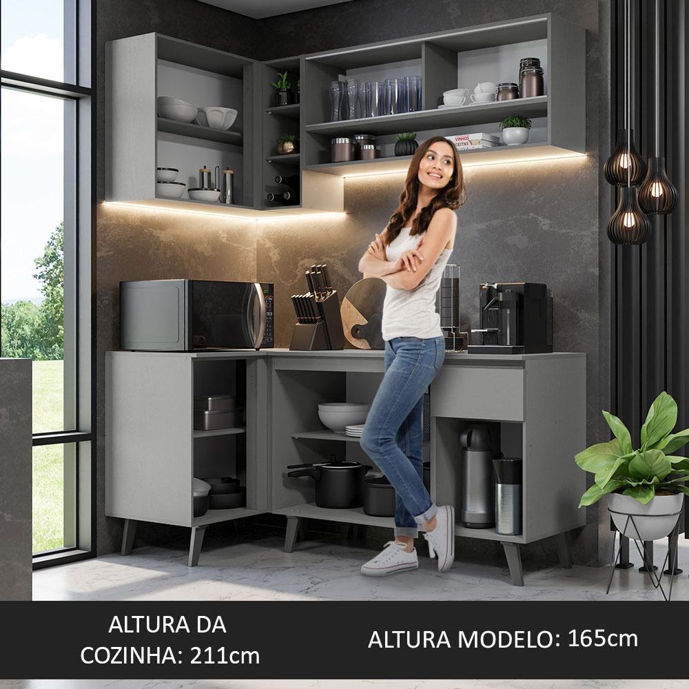 Armário de Cozinha Completa de Canto 265cm Cinza Nice Madesa 01