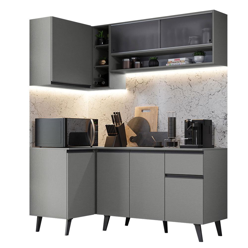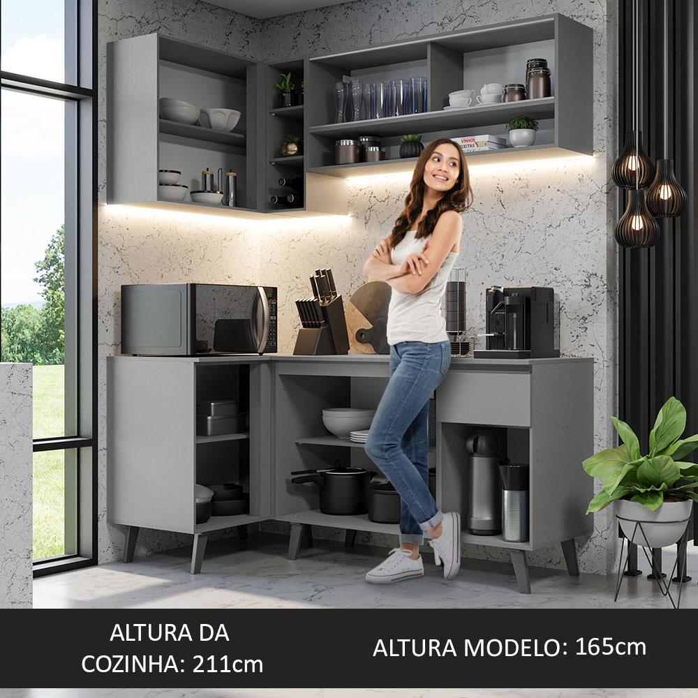 Armário de Cozinha Completa de Canto 265cm Cinza Nice Madesa 02