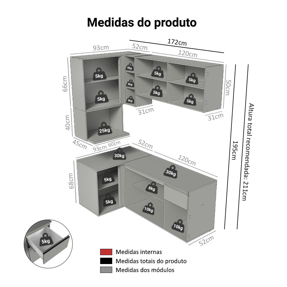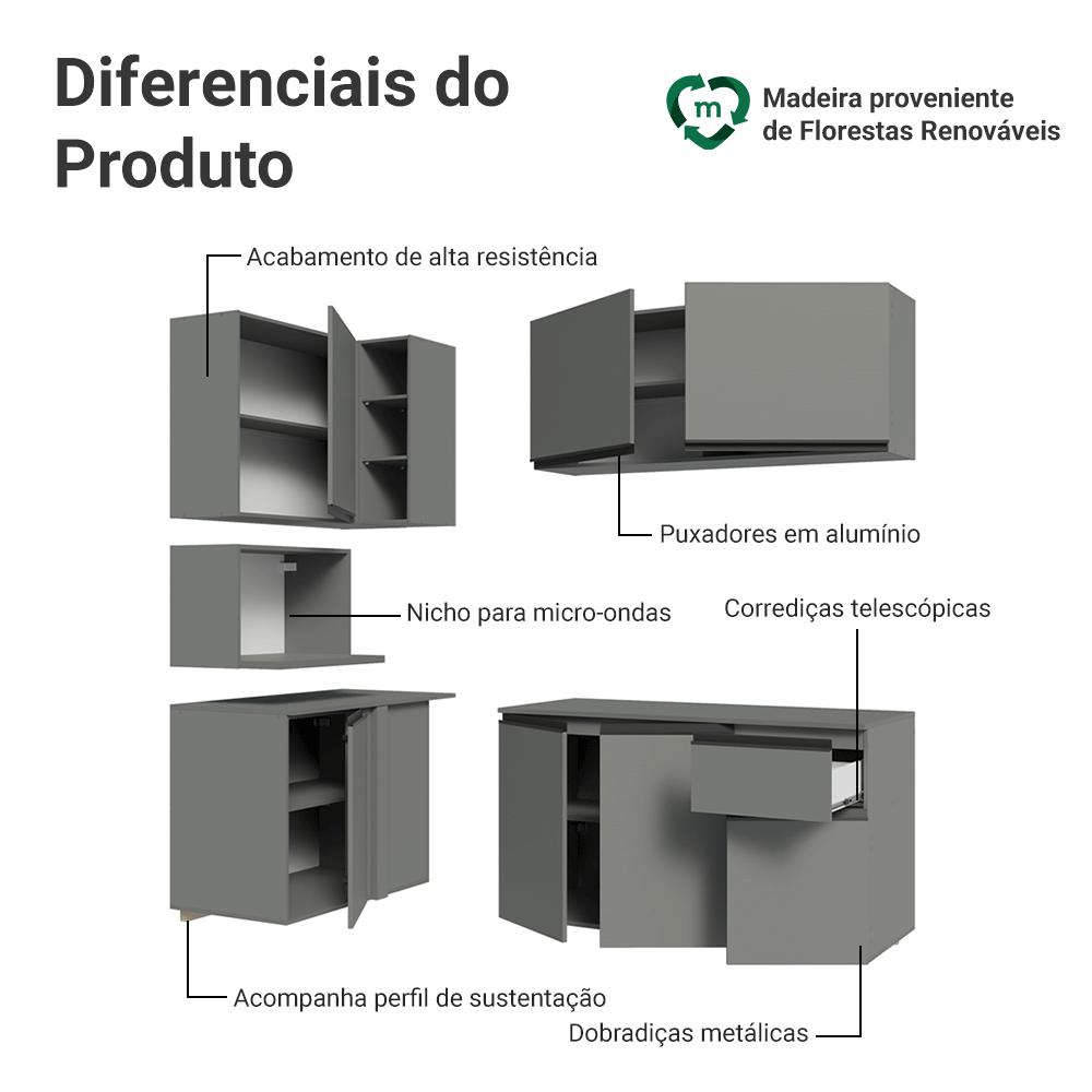 Armário de Cozinha Completa de Canto 265 cm Suspensa Cinza Nice Madesa 06