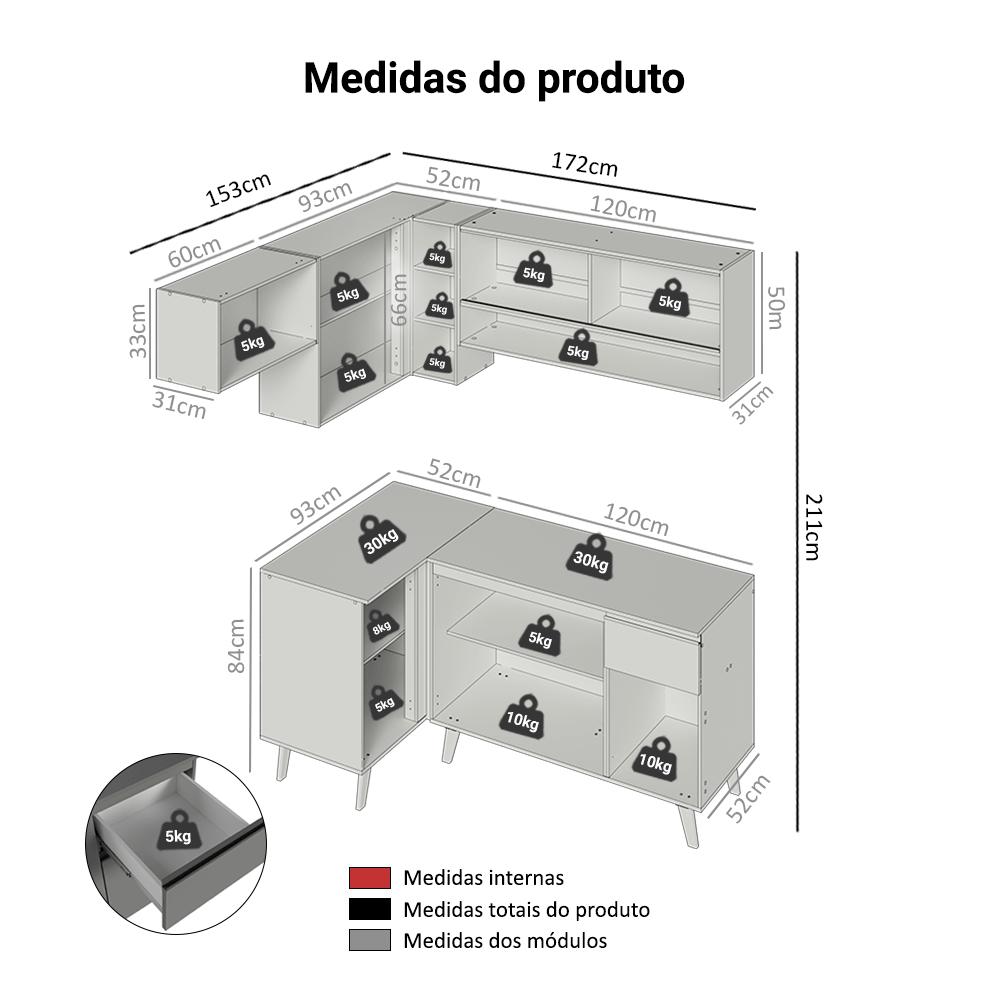 O Armário de Canto Nice da Madesa é a solução ideal para otimizar o espaço da sua cozinha com elegância e praticidade.Fabricado com materiais de alta qualidade, possui portas com dobradiças metálicas, gaveta com corrediça telescópica para um deslizamento mais suave e puxadores de alumínio.E para trazer ainda mais sofisiticação ao ambiente, o móvel conte com portas com vidro neutral no aéreo.Para completar, o acabamento cinza de alta resistência segue as tendências mais atuais de decoração e estilo.Medidas:- 211 cm de altura- 325 cm de largura- 52 cm de profundidade nos balcões e 31 cm nos aéreosO que você recebe:- Um (1) Aéreo de 60 cm com uma porta basculante- Um (1) Aéreo de Canto com uma porta e adega acoplada- Um (1) Balcão de Canto com uma porta- Um (1) Aéreo de 120 cm com duas portas de correr de vidro e um nicho- Um (1) Balcão de 120 cm com três portas, uma gaveta tampo- Manual de montagem e ferragensCódigo do produto: GCNC3250043BÉ bom saber:- Imagens meramente ilustrativas- A Madesa não disponibiliza serviço de montagem- Material: MDPA Madesa se dedica à sustentabilidade com várias iniciativas: temos uma usina própria para gerar energia que abastece uma de nossas fábricas. Selecionamos nossos fornecedores, priorizando aqueles que possuem um compromisso com a sustentabilidade e proteção do meio ambiente. Todo o plástico utilizado no setor produtivo é proveniente de reciclagem e as suas sobras são encaminhadas ao fornecedor que os recicla. Também investimos no desenvolvimento contínuo de nossos colaboradores e em ações educacionais que beneficiem a comunidade.