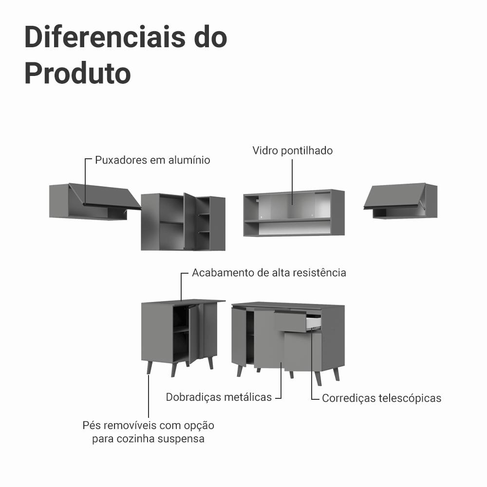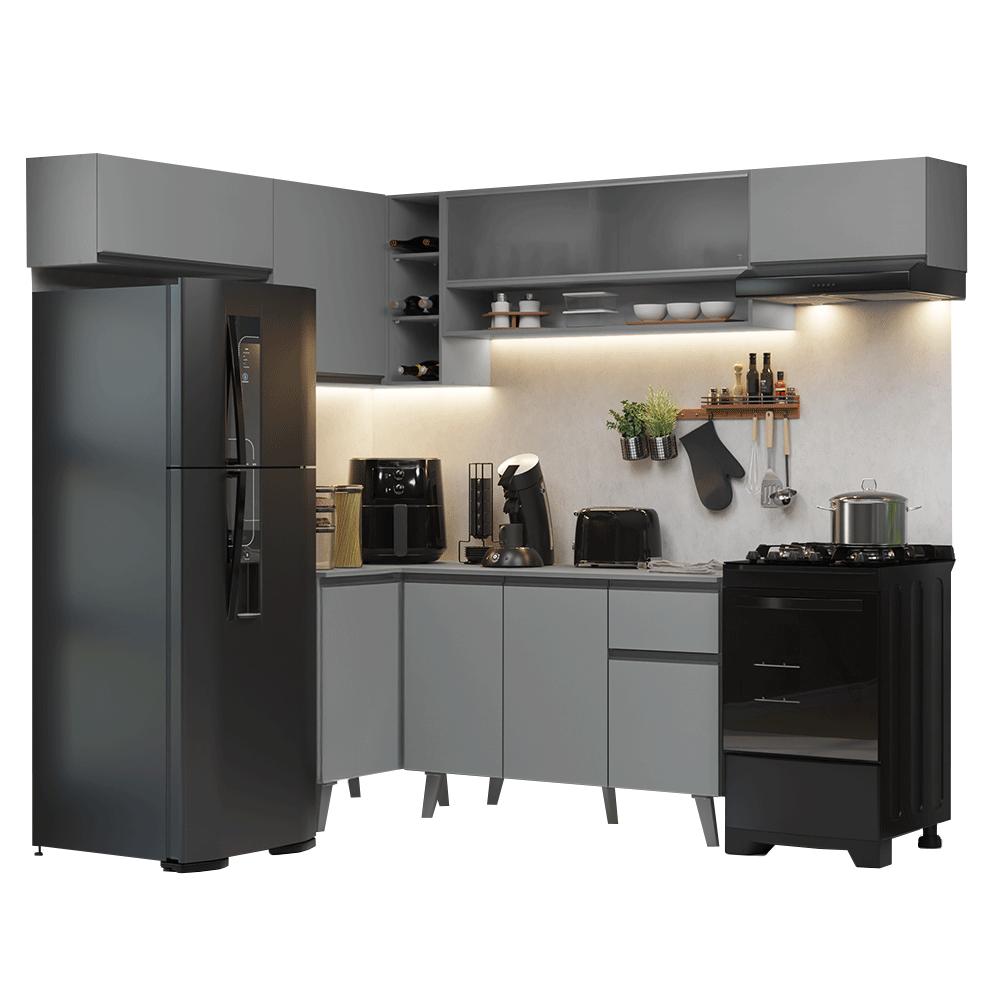 Armário de Cozinha Completa de Canto 405cm Cinza Nice Madesa 05