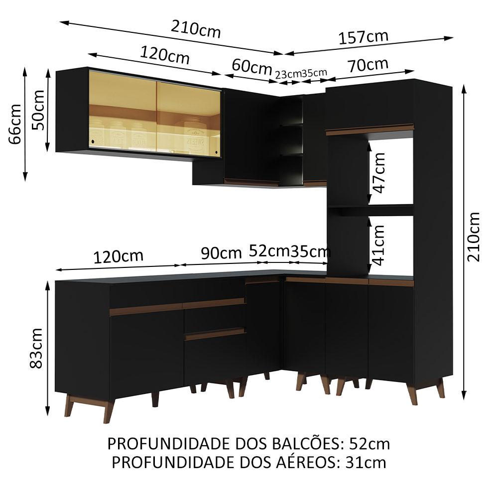 Cozinha Completa de Canto Madesa Reims 367001 com Armário e Balcão - Preto