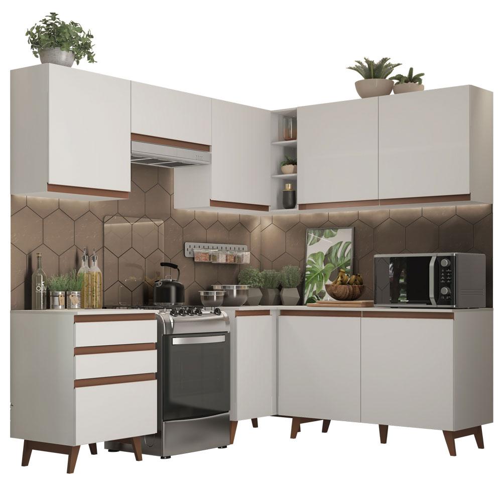 Cozinha Completa de Canto Madesa Reims 392001 com Armário e Balcão - Branco