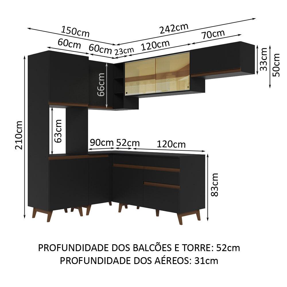 Armário de Cozinha Completa de Canto 392cm Preto Reims Madesa 03