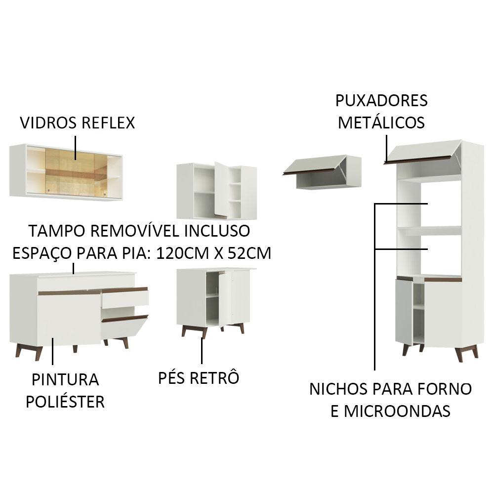 Uma cozinha totalmente modulada e fabricada com itens de qualidade superior. Confira este modelo da linha Reims de Canto da Madesa.Conta com puxadores embutidos em alumínio, dobradiças metálicas e gavetas com corrediças de metal. Além disso, os pés em madeira no estilo retrô e o armário aéreo com vidros reflex deixam esta cozinha ainda mais linda.Por seu tamanho, é perfeita para organizar toda louça, utensílios e eletros. Além disso, todos os balcões acompanham tampo em MDP, que podem ser removidos para colocação de pia e/ou cooktop. A torre quente comporta forno e micro-ondas e possui abertura para dissipação do calor.O acabamento é branco, feito em Pintura Poliéster ecológica com sete camadas que protegem o móvel contra os efeitos da água e do calor.Os armários aéreos e a torre precisam ser fixados na parede. Os módulos de canto podem ser montados tanto para o lado direito quanto para o lado esquerdo, conforme a necessidade do ambiente.Esta cozinha por ser complementada por outros módulos da linha Reims da Madesa.(Imagens meramente ilustrativas, a decoração não acompanha o produto.)Itens inclusos:- Um (1) Aéreo de 120 cm com duas (2) portas de correr em vidro reflex- Um (1) Balcão de 120 cm com duas (2) portas, uma (1) gaveta e tampo- Um (1) Aéreo de Canto com uma (1) porta e adega acoplada- Um (1) Balcão de Canto com uma (1) porta e tampo- Um (1) Aéreo de 70 cm com uma (1) porta basculante- Uma (1) Torre de 70 cm com três (3) portas e dois (2) nichosCódigo do produto: GCRM40200209Obs.: A Madesa não disponibiliza serviço de montagem. O produto segue com manual de instalação e todas as ferragens necessárias para sua montagem.1 – O produto é novo ou usado?R.: Todos os produtos da Madesa são novos, enviados da nossa fábrica diretamente para as casas de nossos clientes.2 – O produto vem montado? Se não, vocês realizam a montagem?R.: A Madesa não disponibiliza serviço de montagem. Todos os produtos seguem com manual de instalação e as ferragens necessárias. Alguns produtos possuem vídeo explicando o passo a passo da montagem.3 – Vocês possuem loja física? Posso retirar meu produto em mãos?R.: Não possuímos loja física, apenas loja virtual. Confira as opções de envio ao colocar o seu CEP.4 – Qual é o valor do envio? Posso pagar separadamente?R.: O valor do envio é calculado com base no peso e volume do produto, e no CEP de destino. Você pode calcular o valor e prazo de entrega no simulador.5 – A Madesa entrega em todo Brasil? Como é feita a entrega?R.: Sim, entregamos no Brasil inteiro através de transportadoras parceiras.6 – O produto acompanha Nota Fiscal?R.: Sim, todos os produtos são entregues com suas respectivas notas fiscais.7 – Os produtos possuem garantia?R.: Sim. A Madesa oferece 3 meses de garantia para defeitos de fabricação.A Madesa se dedica à sustentabilidade com várias iniciativas: temos uma usina própria para gerar energia que abastece uma de nossas fábricas. Selecionamos nossos fornecedores, priorizando aqueles que possuem um compromisso com a sustentabilidade e proteção do meio ambiente. Todo o plástico utilizado no setor produtivo é proveniente de reciclagem e as suas sobras são encaminhadas ao fornecedor que os recicla. Também investimos no desenvolvimento contínuo de nossos colaboradores e em ações educacionais que beneficiem a comunidade.