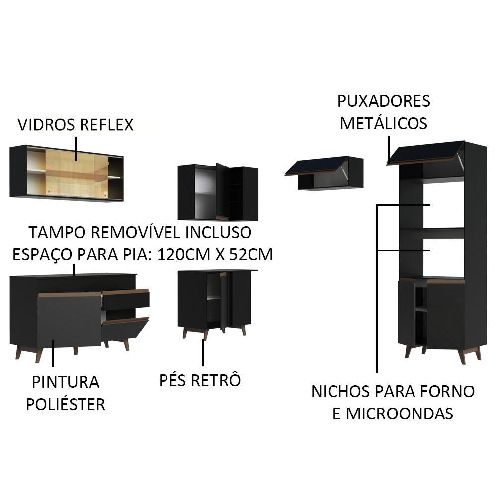 Cozinha Completa de Canto Madesa Reims 402002 com Armário e Balcão - Preto
