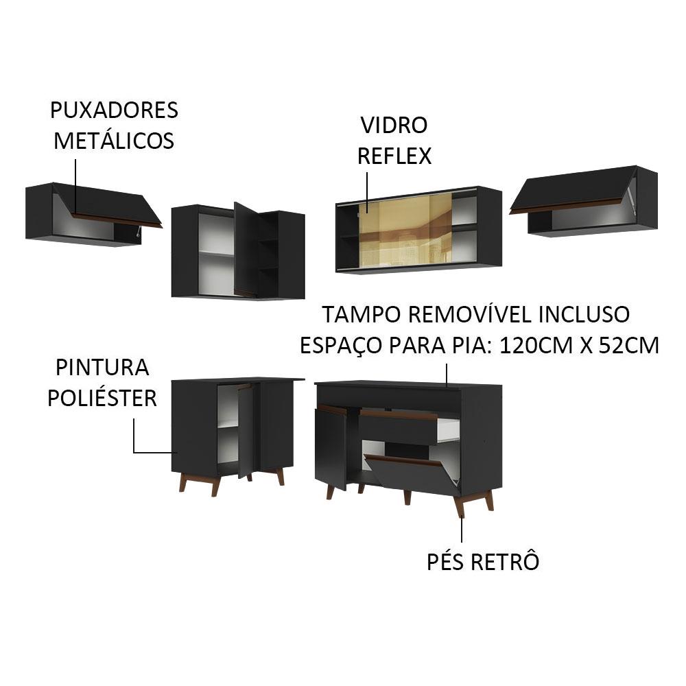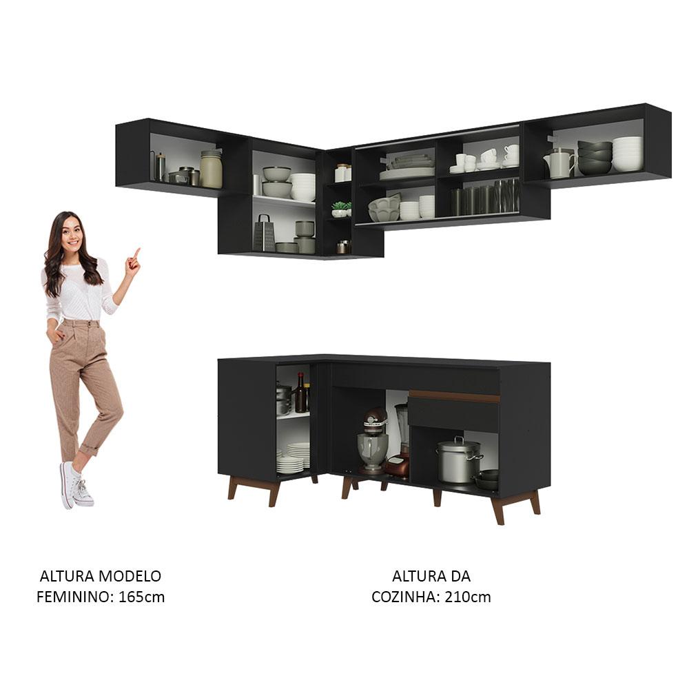 Armário de Cozinha Completa de Canto 402cm Preto Reims Madesa 04