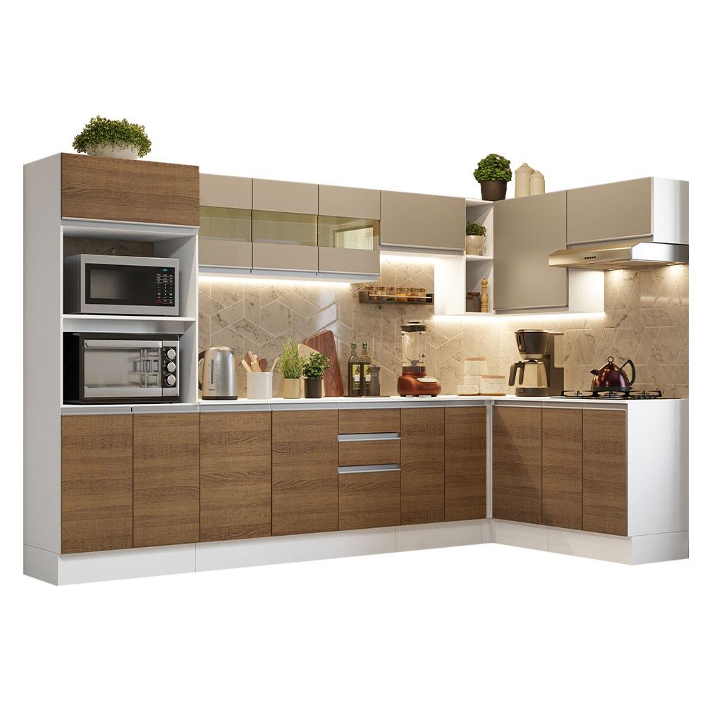 Cozinha Completa 100% MDF Madesa Smart de Canto - Branco/Rustic/Crema