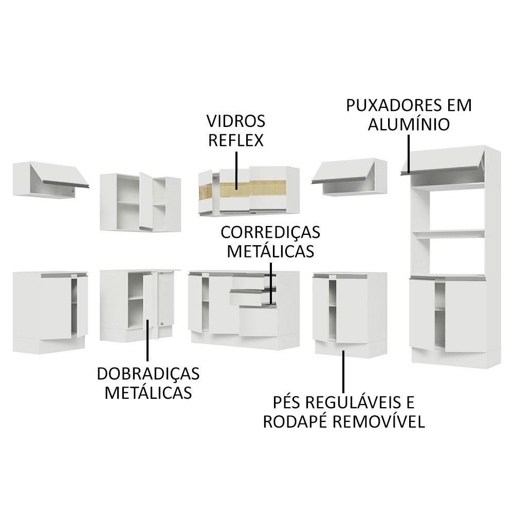 Armário de Cozinha Completa de Canto 100% MDF 447cm Branco Smart Madesa 02