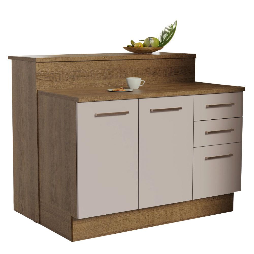 Ilha de Cozinha com Bancada e Balcão 120 cm Rustic/Crema Agata Madesa
