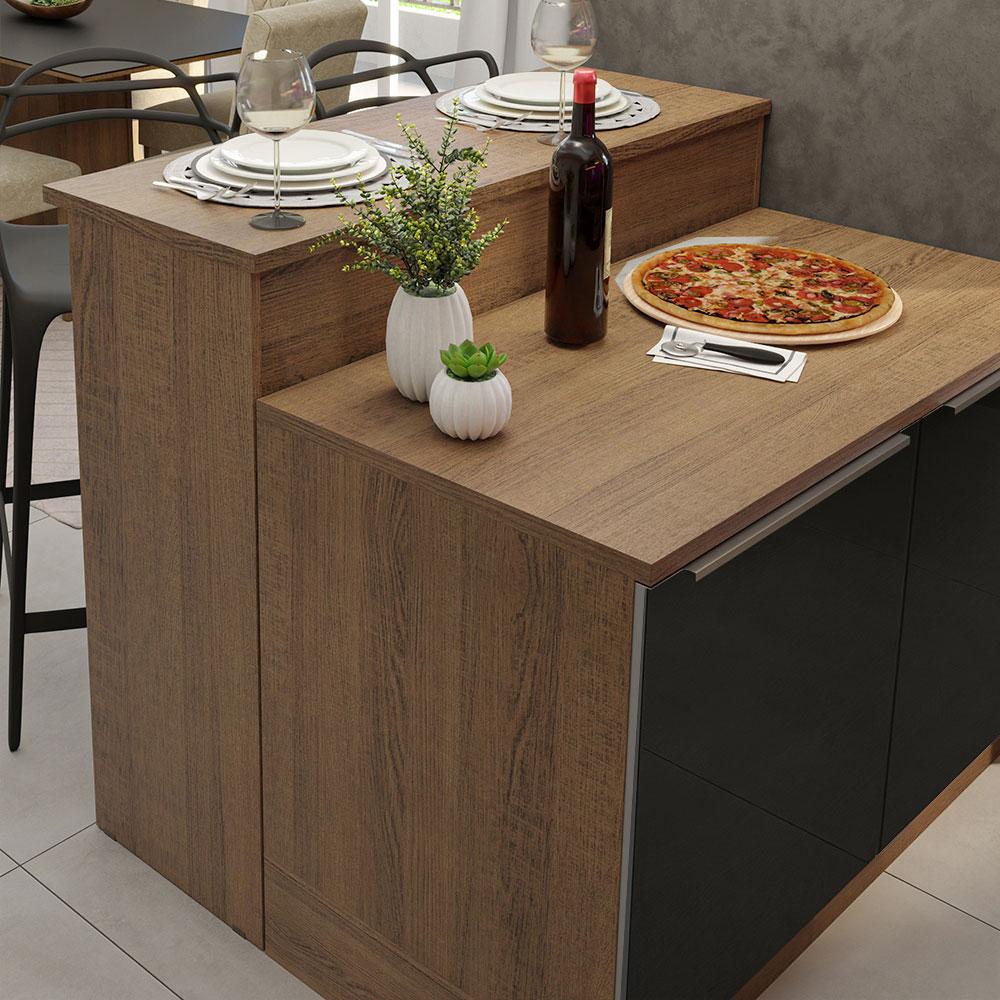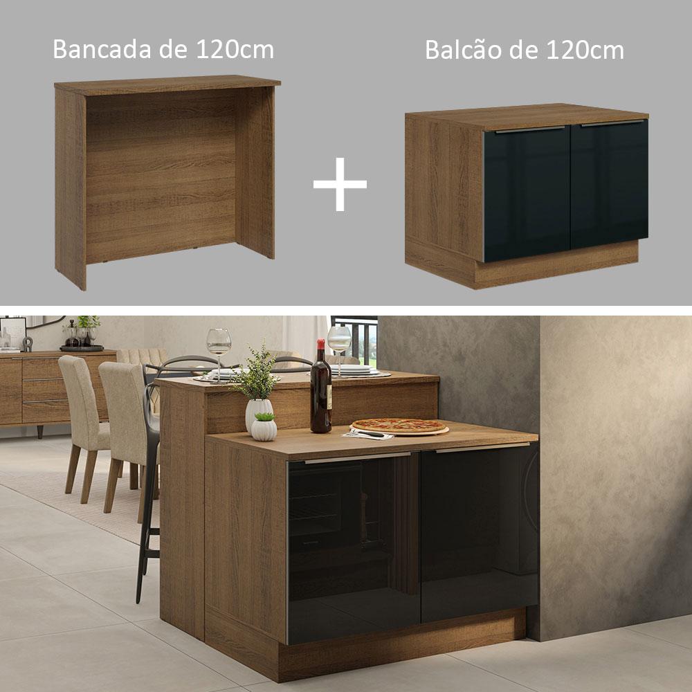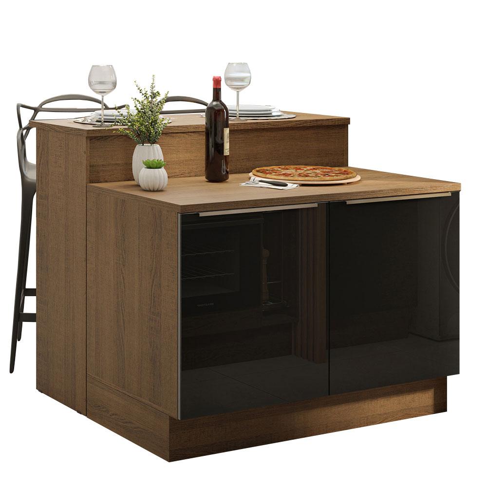 Ilha de Cozinha com Bancada e Balcão 120 cm Rustic/Preto Lux Madesa