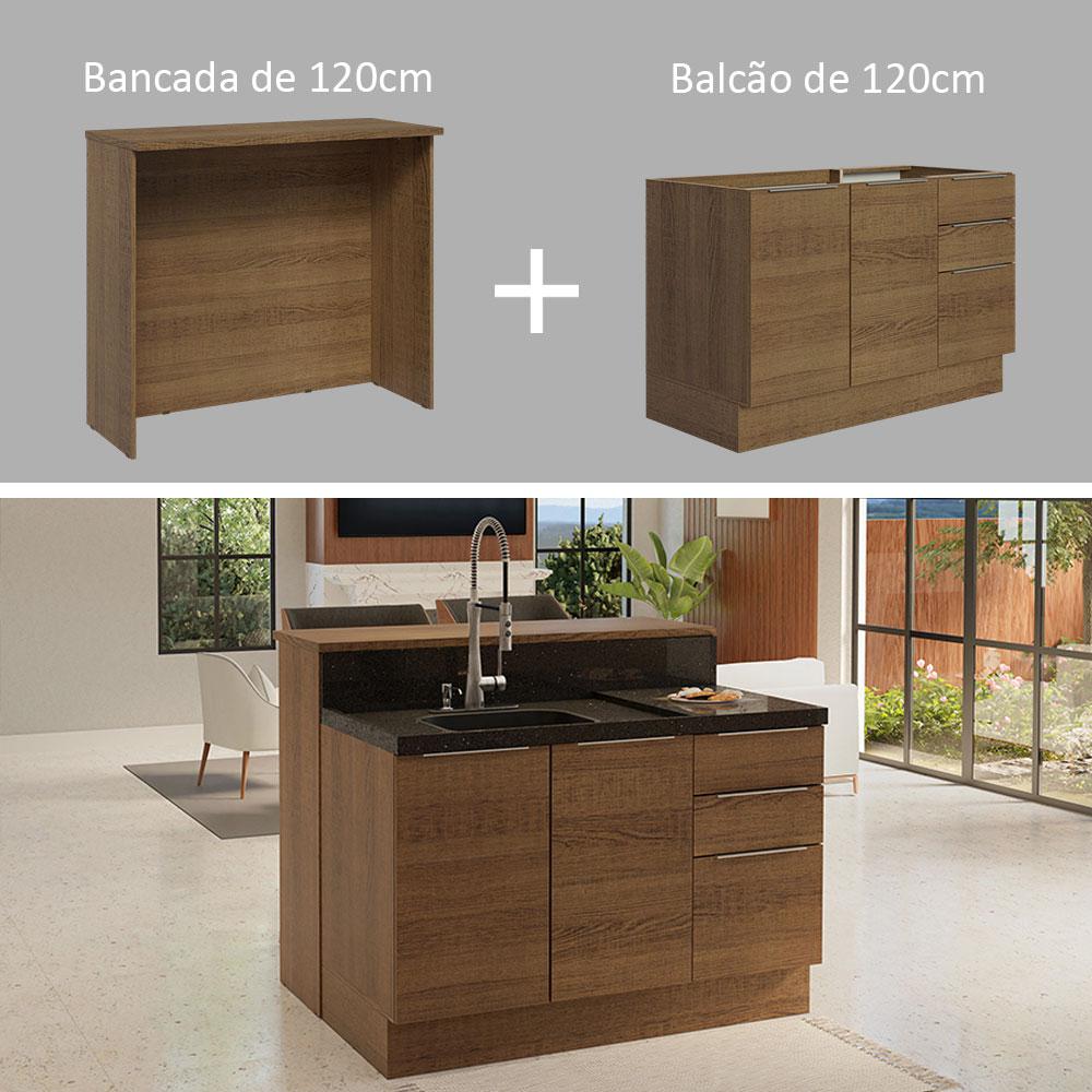Ilha de Cozinha com Bancada e Balcão 120 cm Rustic Stella Madesa