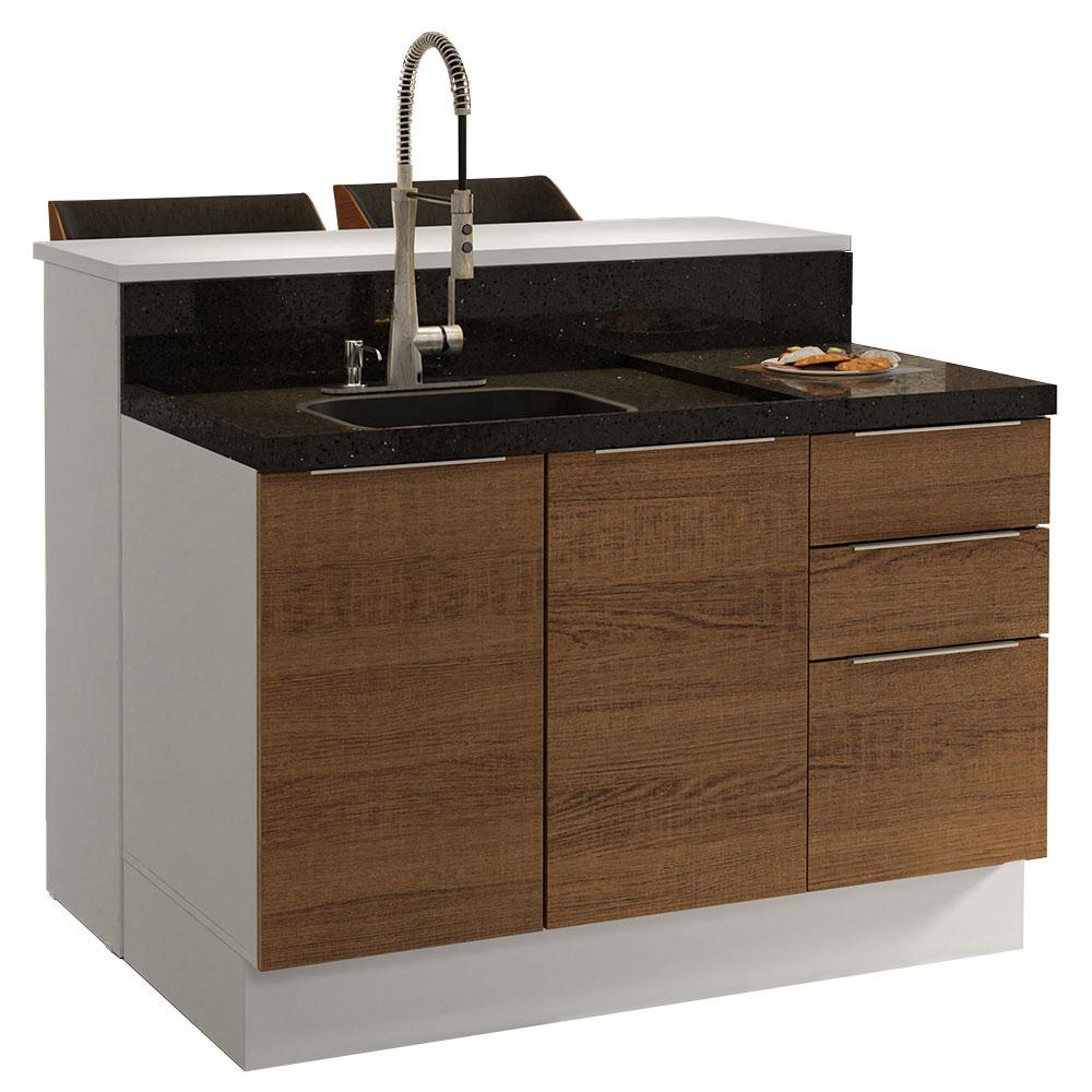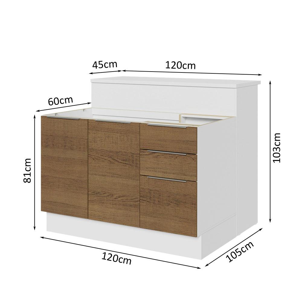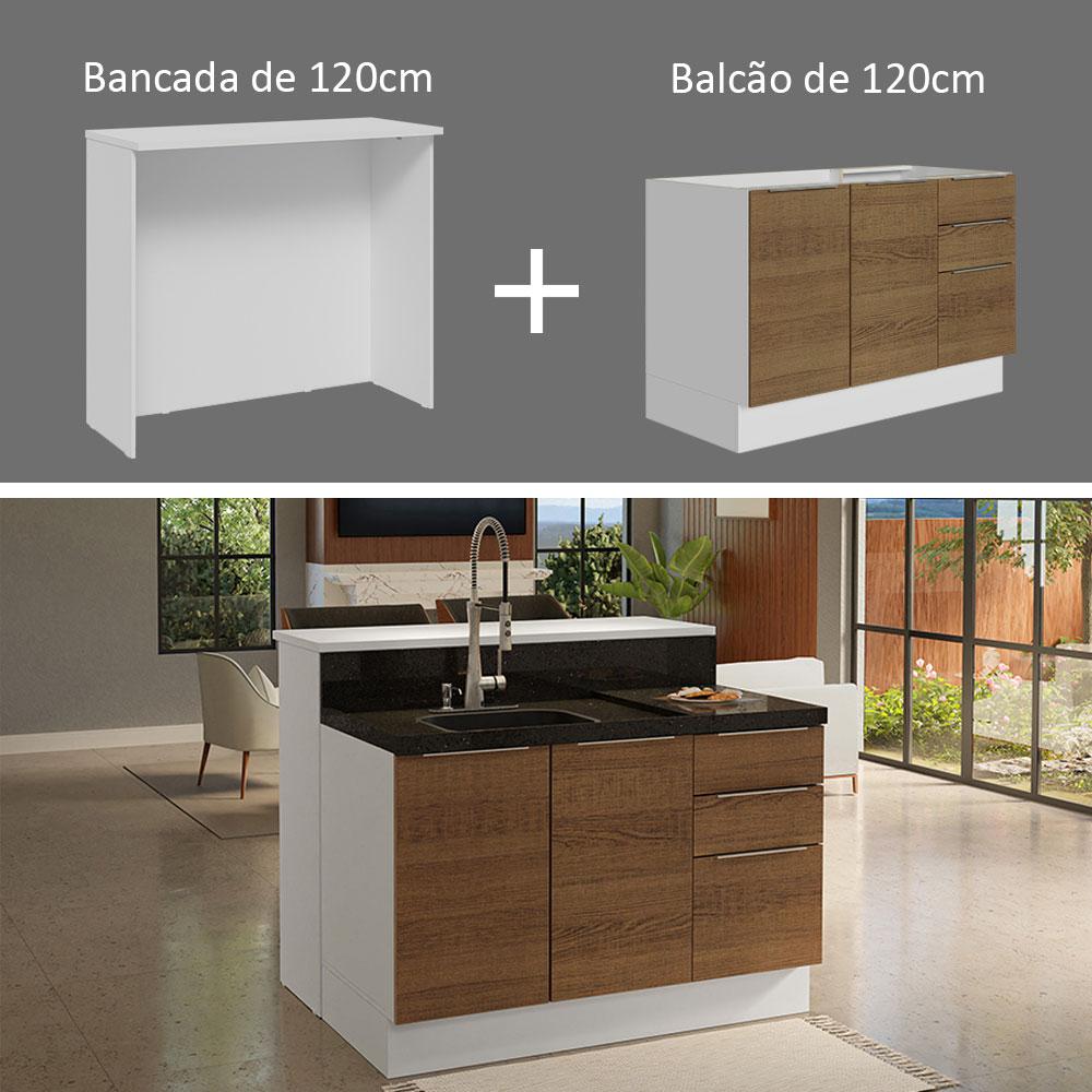 Ilha de Cozinha com Bancada e Balcão 120 cm Branco/Rustic Stella Madesa