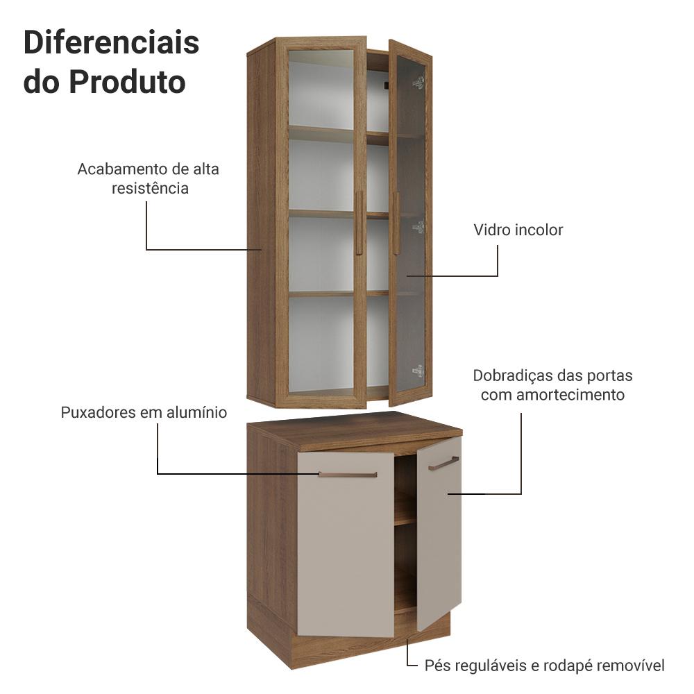 Kit Balcão + Cristaleira 70cm Rustic/Crema Agata Madesa 01