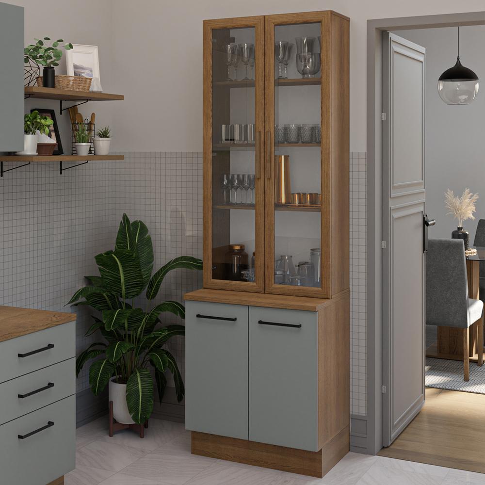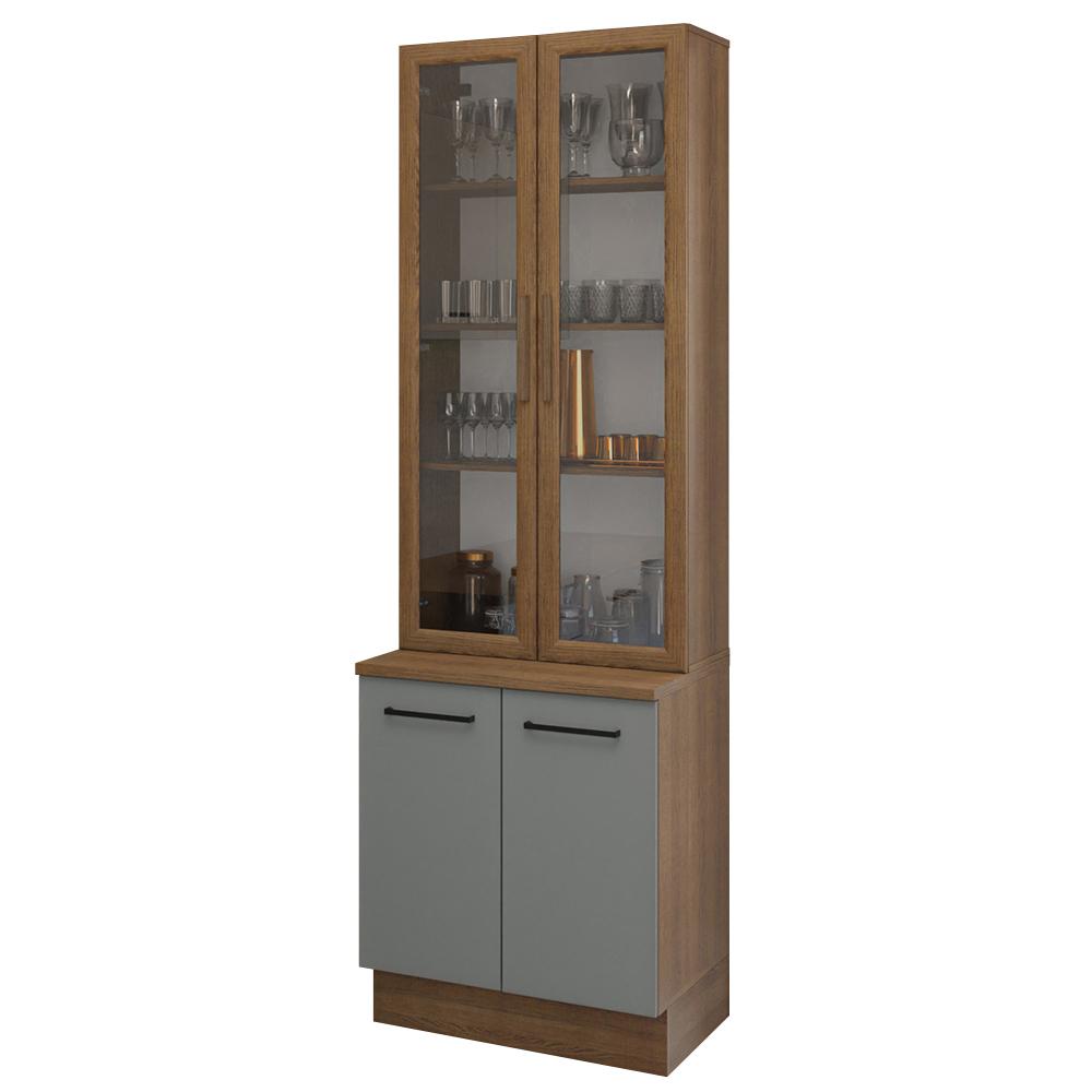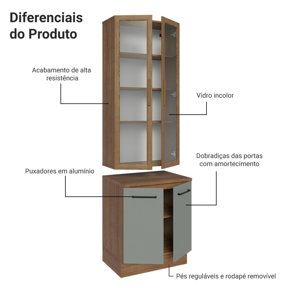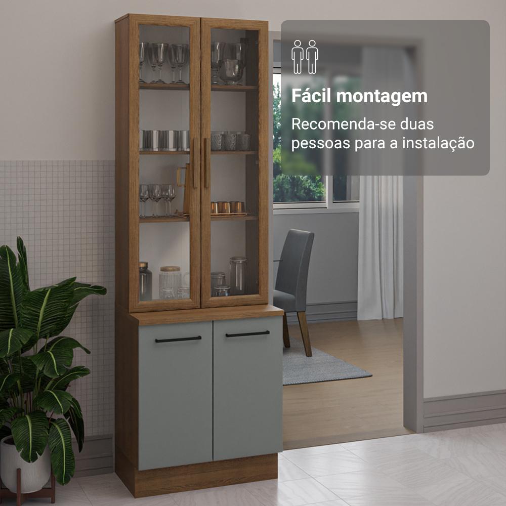 Kit Balcão + Cristaleira 70cm Rustic/Cinza Agata Madesa 01