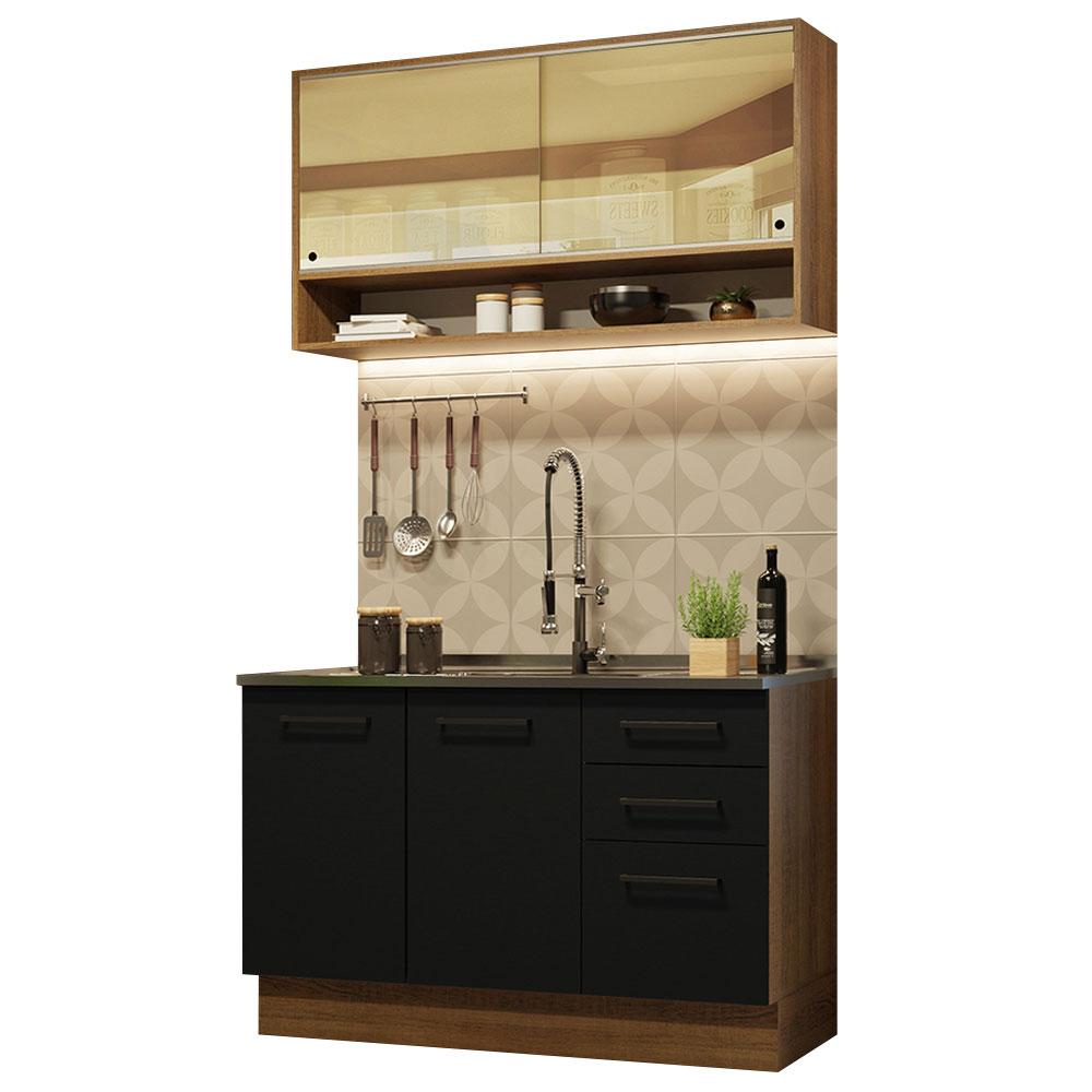 Armário de Cozinha Compacta 120cm Rustic/Preto Agata Madesa 02