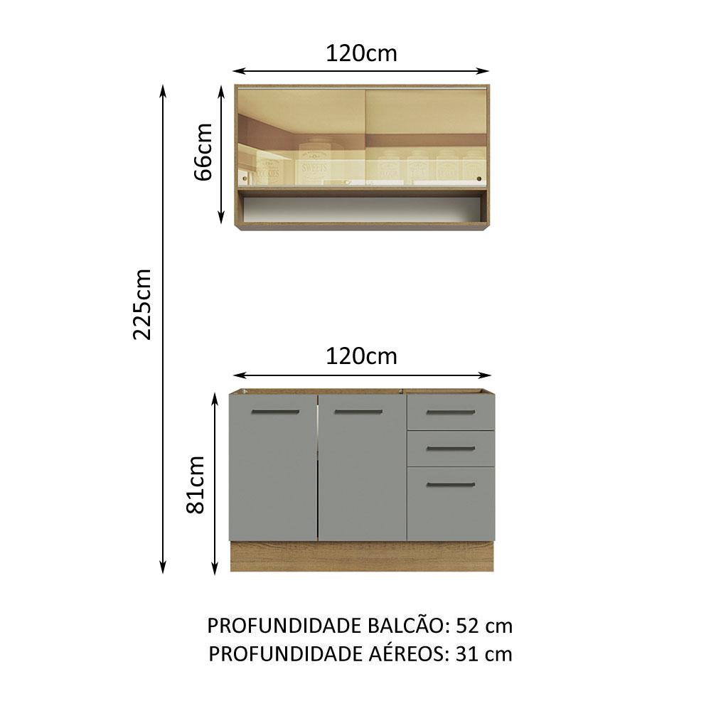 Armário de Cozinha Compacta 120cm Rustic/Cinza Agata Madesa 02