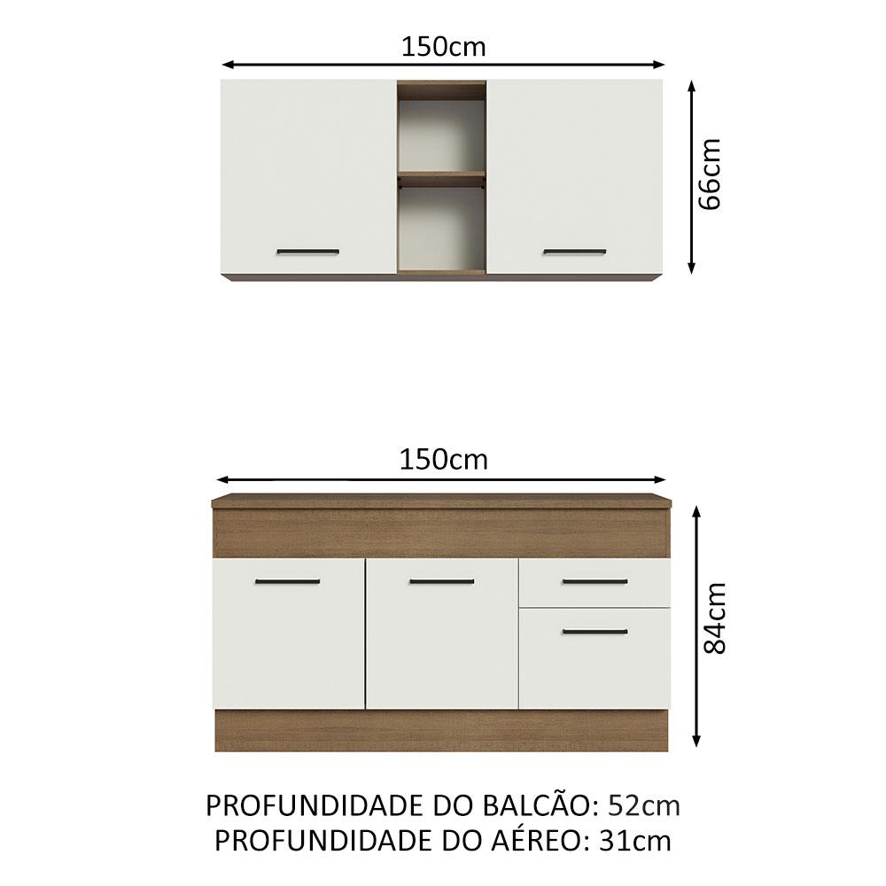 Armário de Cozinha Compacta 150cm Rustic/Branco Agata Madesa 01