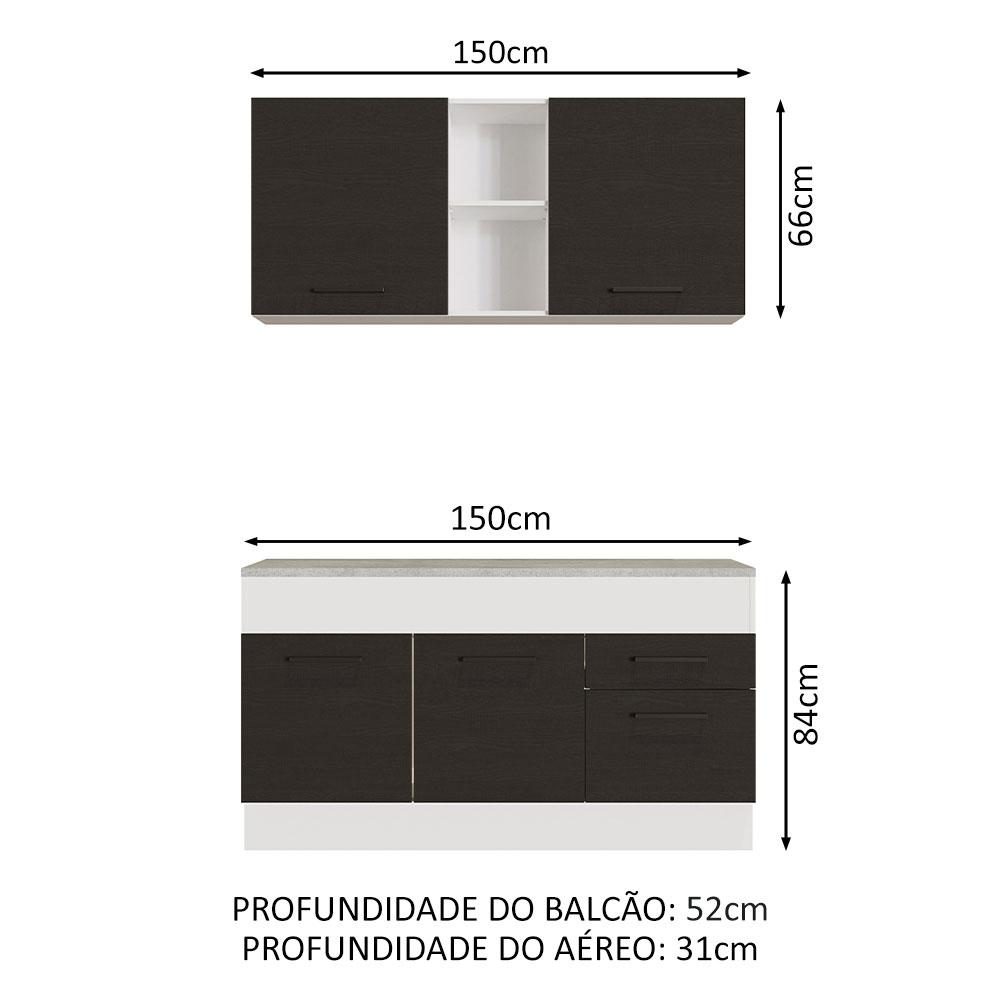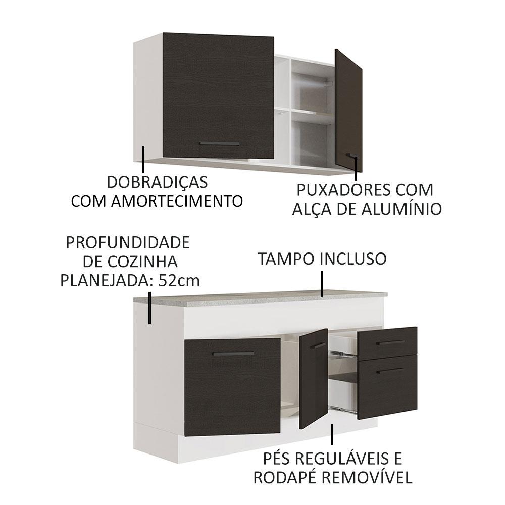 Armário de Cozinha Compacta 150cm Branco/Preto Agata Madesa 01