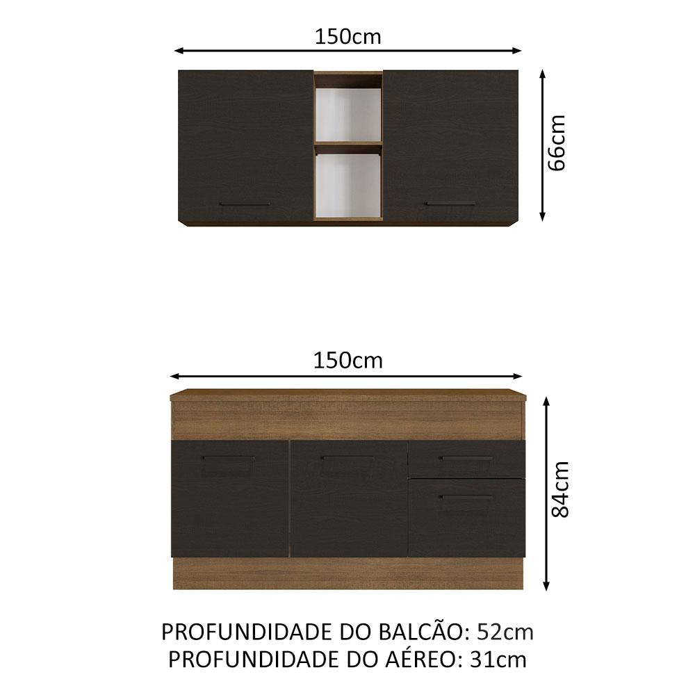 Armário de Cozinha Compacta 150cm Rustic/Preto Agata Madesa 01