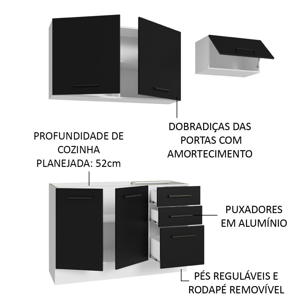 Armário de Cozinha Compacta 180cm Branco/Preto Agata Madesa 09