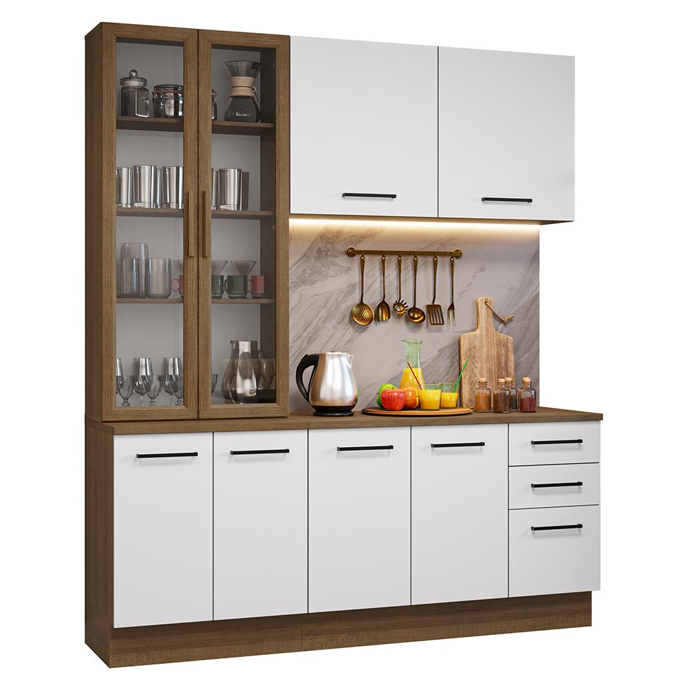 Armário de Cozinha Compacta 190cm com Cristaleira Rustic/Branco Agata Madesa 01