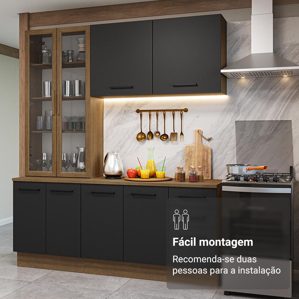 Armário de Cozinha Compacta 190cm com Cristaleira Rustic/Preto Agata Madesa 01