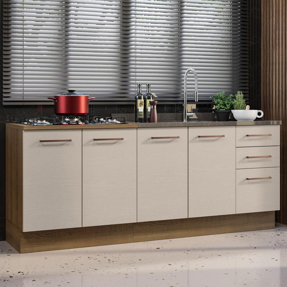 Kit com 2 Balcões de Cozinha 3 Gavetas 4 Portas (Sem Tampo e Pia) Rustic/Crema Agata Madesa