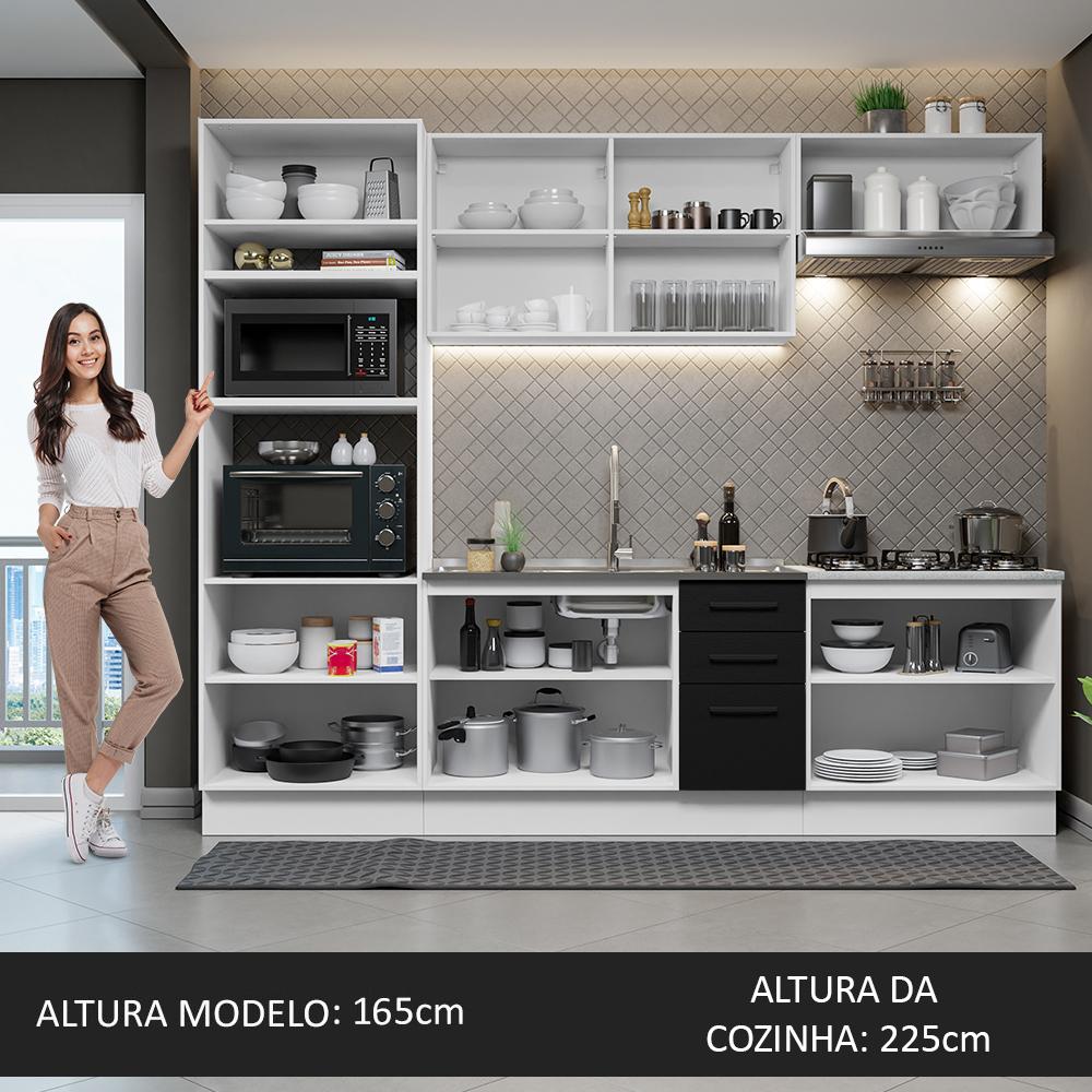 Cozinha Completa Madesa Agata 270001 com Armário e Balcão (Sem Tampo e Pia) - Branco/Preto