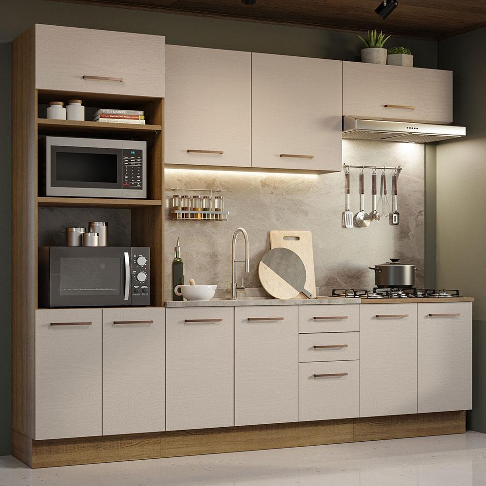 Armário de Cozinha Completa 270cm Rustic/Crema Agata Madesa 01