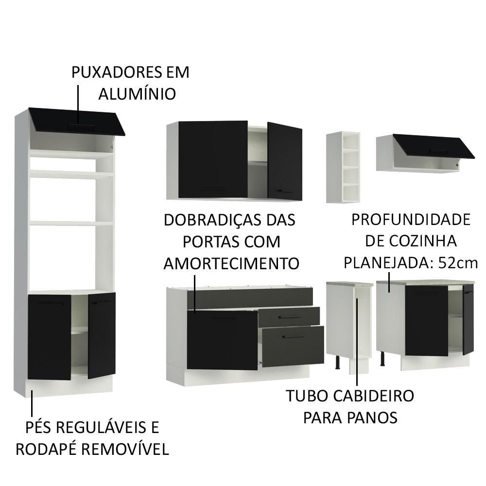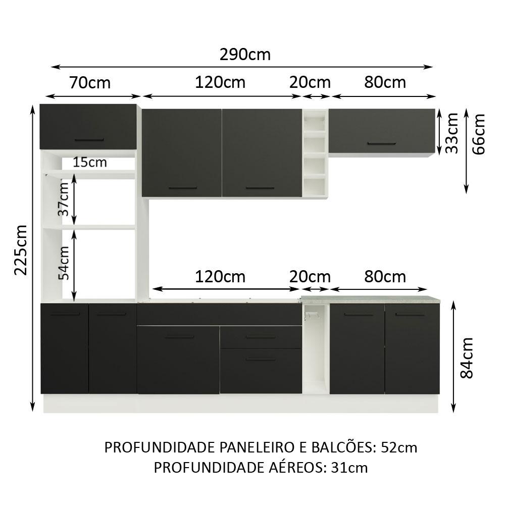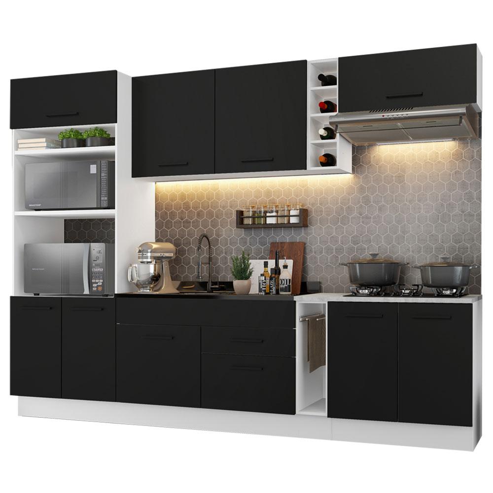 Armário de Cozinha Completa 290cm Branco/Preto Agata Madesa 01