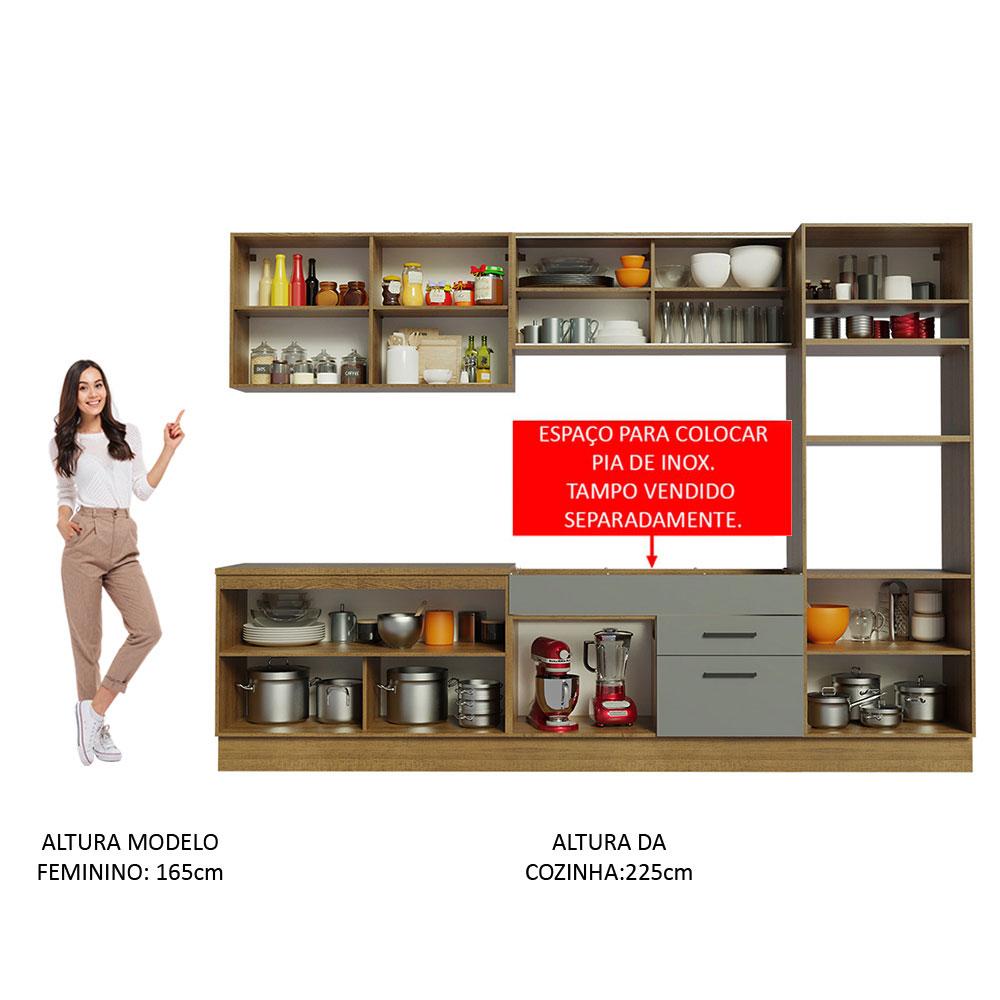 Cozinha Completa Madesa Agata 310001 com Armário e Balcão (Sem Tampo e Pia) - Rustic/Cinza