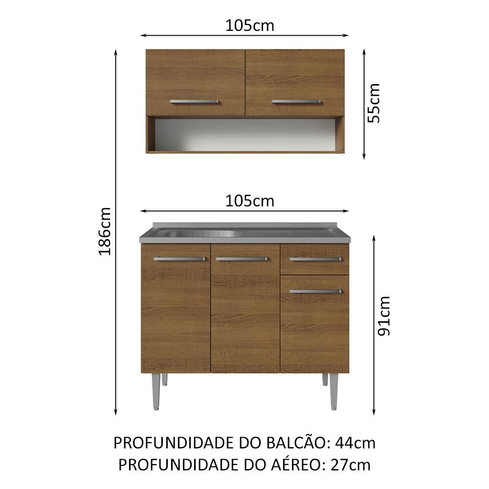 Armário de Cozinha Compacta 105cm com Pia Rustic Emilly Madesa 04