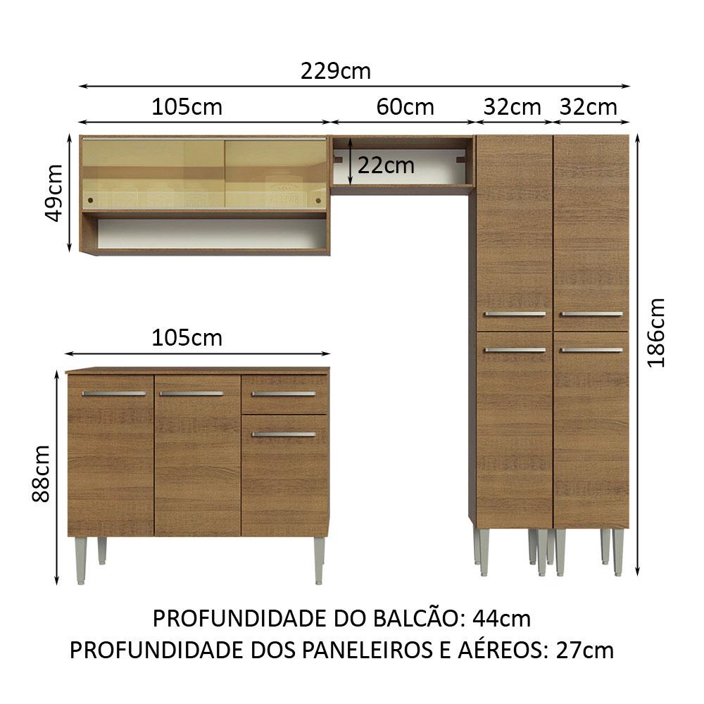 Armário de Cozinha Completa 229cm Rustic Emilly Madesa 04