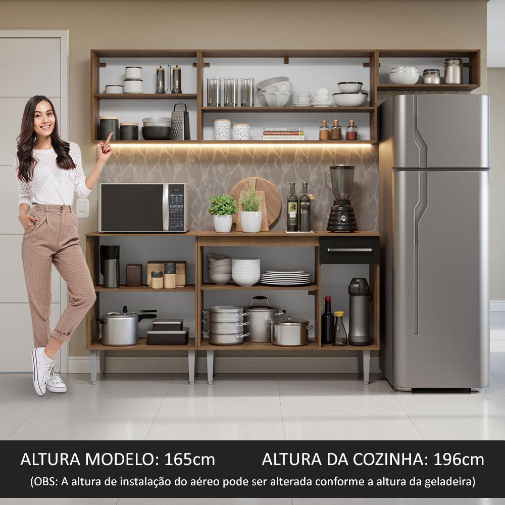 Armário de Cozinha Compacta 229cm Rustic/Preto Emilly Madesa 14