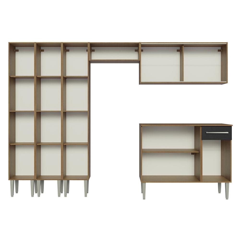Armário de Cozinha Completa 261cm Rustic/Preto Emilly Madesa 05