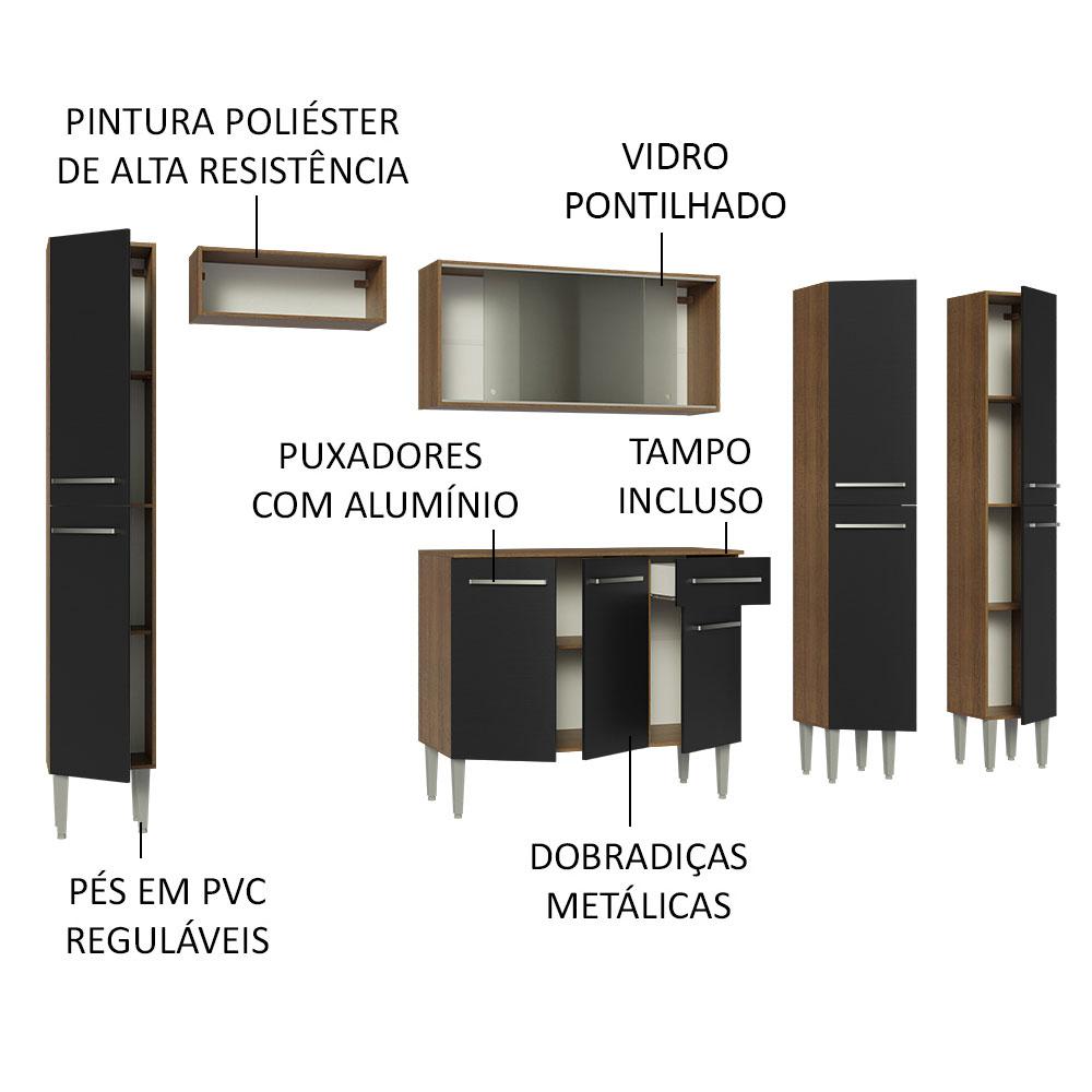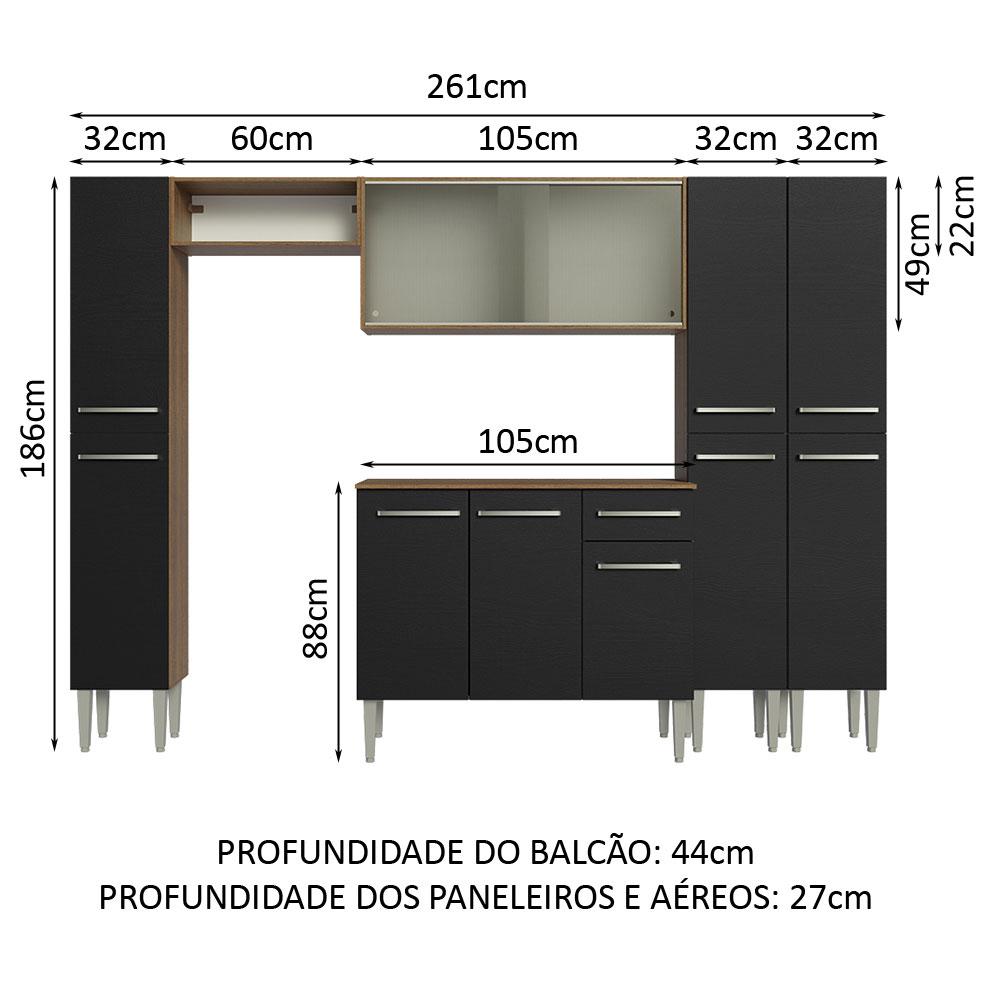 Armário de Cozinha Completa 261cm Rustic/Preto Emilly Madesa 06