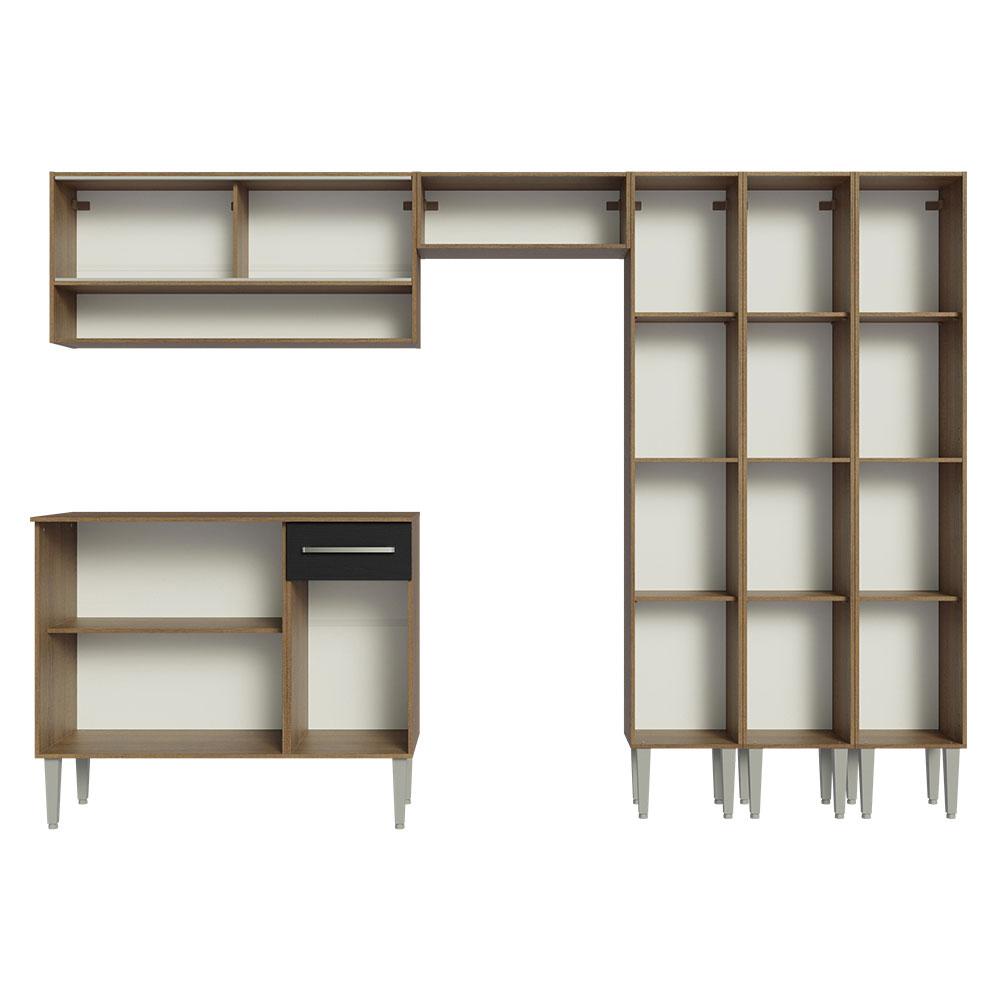 Armário de Cozinha Completa 261cm Rustic/Preto Emilly Madesa 08